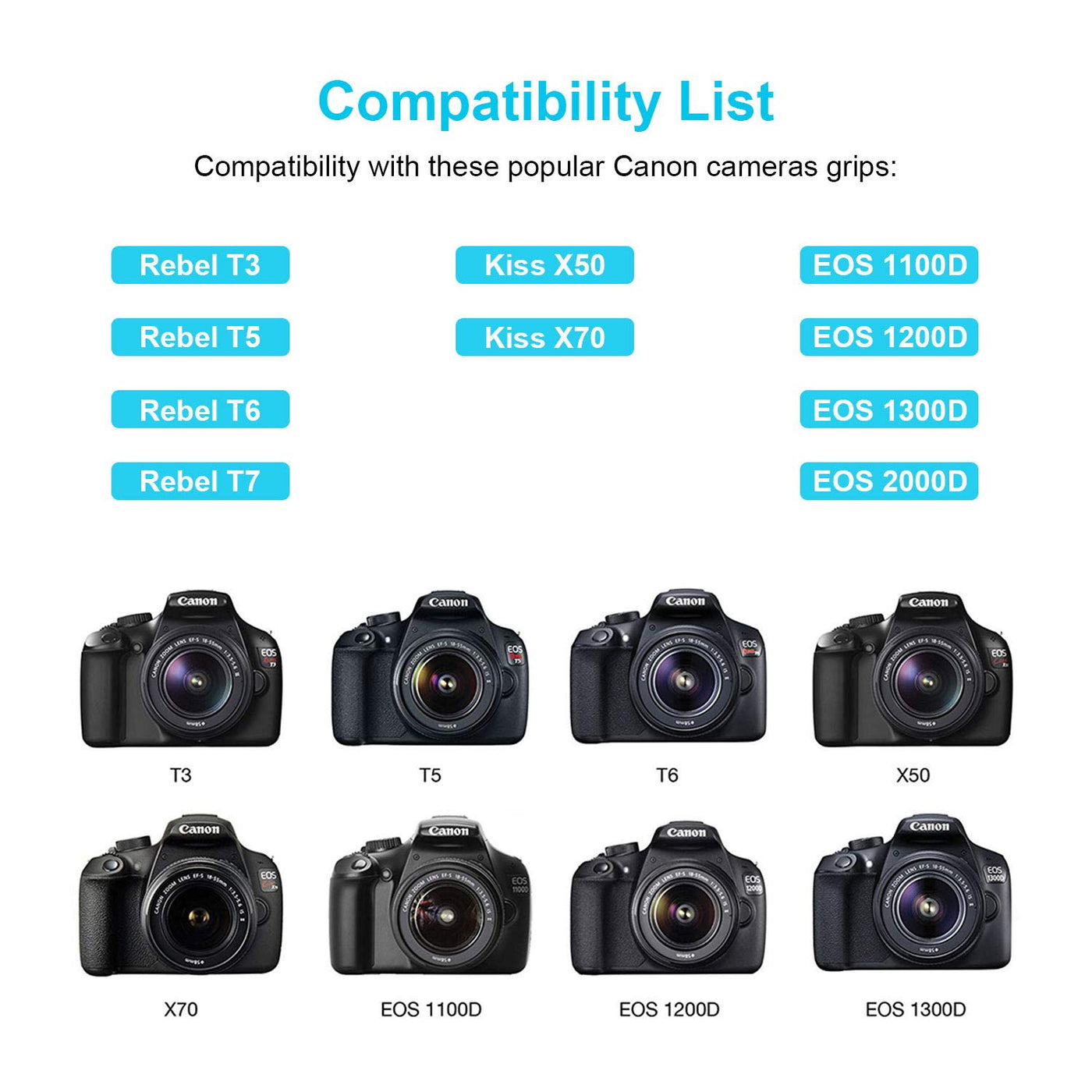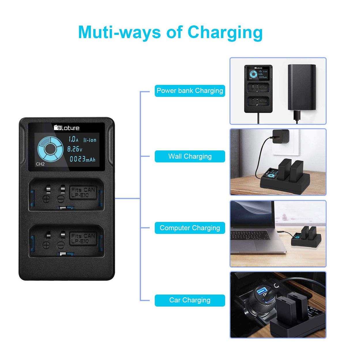 Notes: 1:Diverse Compatibility:Made To The Exact Specification Of Canon Lp-E10 Batteries, Works With Canon Eos Rebel T3, T5, T6, T7, Kiss X50, Kiss X70, Eos 1100D, Eos 1200D, Eos 1300D And More 2.If You Are Not Sure About Compatibility, Please Contact Ploture Customer Support For More Information. Specifications Capacity: 1000Mah X 2 (890 Shots Each) Charging Time: 3 Hours (For Both Batteries Simultaneously) Protections: Overcharge, Over Discharge, Short-Circuit, Surge, Overvoltage, And Overcurrent Package Includes: 2 X Replacement Batteries For Canon Lp-E10 1000Mah 1 X Dc Dual Battery Charger 1 X Micro-Usb Cable About Warranty: 18-Month Manufacturer Warranty From The Date Of Purchase 24-Hour Easy-To-Get Customer Service