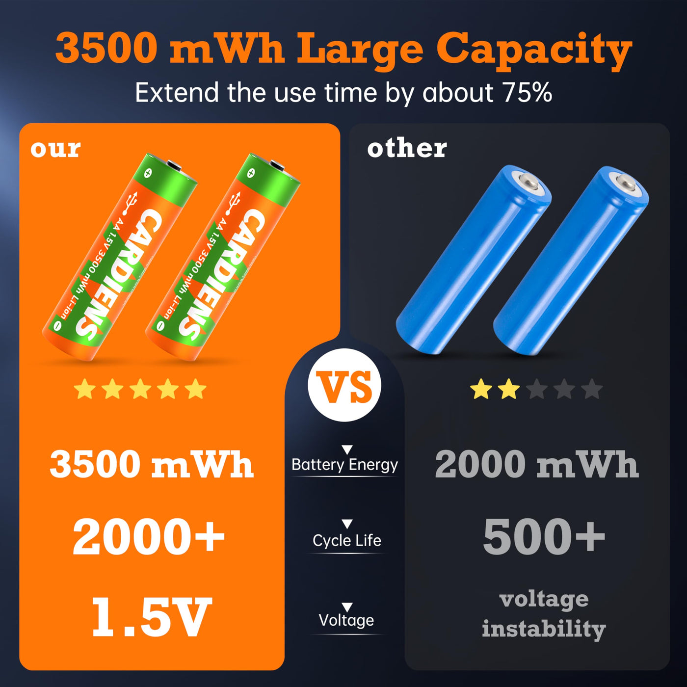 Cardiens Rechargeable Aa Batteries With Fast Charger 1.5V, Triple A Lithium Batteries 3500 Mwh High Capacity Aa Lithium Batterie