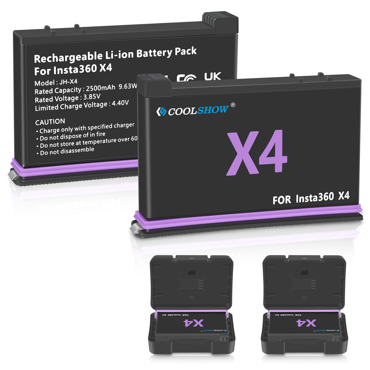 Coolshow Action Camera X4 Battery Replacement 2500Mah 2 Packs Only Compatible With Insta360 X4 Camera