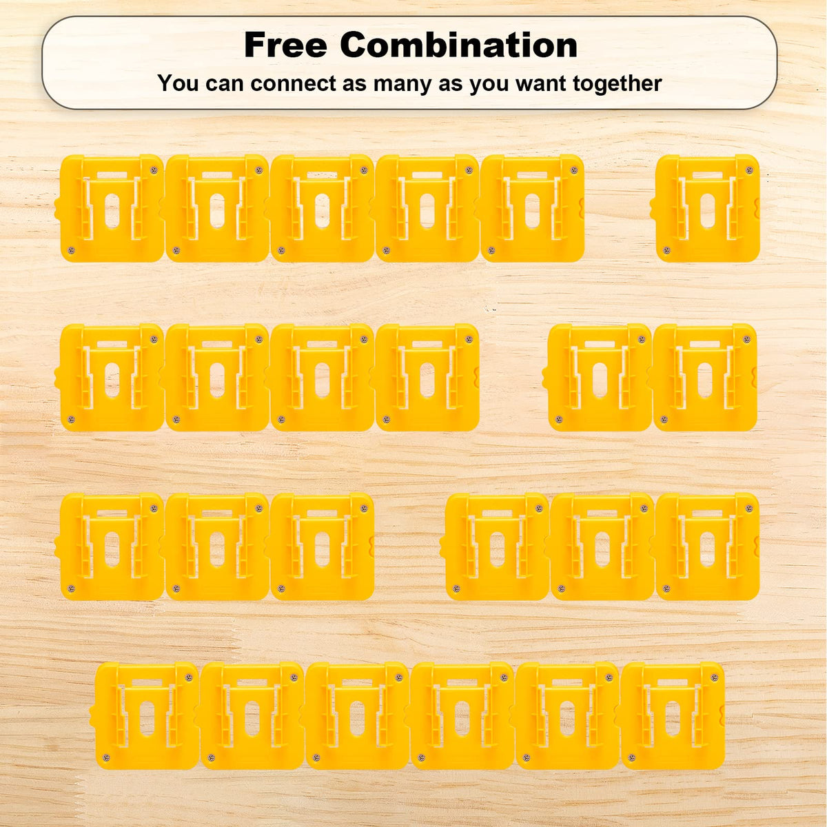 Specifications: Type: Battery Holder Material: Abs Color: Yellow Application: Crtbelfy Battery Mount Holder Compatible For Dewalt Dcb200 Dcb201 Dcb202 Dcb203 Dcb204 Dcb205 Dcb206 Dcb208 Battery And Dcb606 Dcb609 Battery. Install:Mount This Holder On A Wall Or Under A Shelf With The Included Screws./P> Package List:&Nbsp; 6*Battery Holders 12*Screws