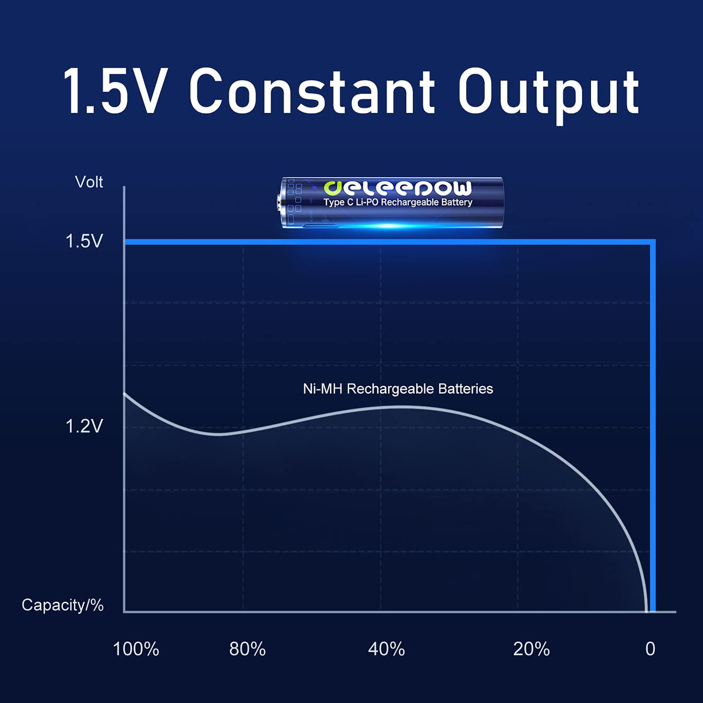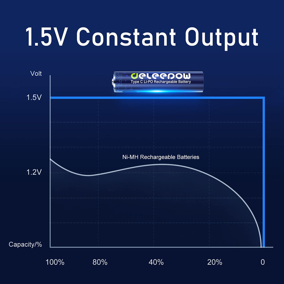 Deleepow Aaa Rechargeable Batteries Li-Ion 1200Mwh Aaa Lithium Rechargeable Batteries 1500 Cycles With Usb Cable 4-Pack