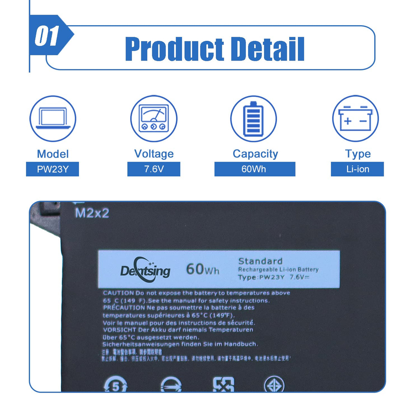 Battery Type: Li-Ion Model: Pw23Y Voltage: 7.6V Capacity: 60Wh/7631Mah Color: Black Warranty: 12 Months. If You Have Any Issue, Please Contact Us Through The Seller'S After-Sales Service, We Will Help You Resolve The Problem. Compatible Part Numbers: Pw23Y Tp1Gt 0Tp1Gt Rnp72 0Rnp72 Compatible With: Dell Xps 13 9360 Series Dell Xps 13 2017 Series Dell Xps 13-9360-D1605G Series Dell Xps 13-9360-D1605T Series Dell Xps 13-9360-D1609, Dell Xps 13-9360-D1609G Series Dell Xps 13-9360-D1705, Dell Xps 13-9360-D1705G Series Dell Xps 13-9360-D1505 , Dell Xps 13-9360-D1505G Series Dell Xps 13-9360-D1805T, Dell Xps 13-9360-D1805Tg Series Note: Not Fit For Dell Xps 13 9350 And Xps 13 9343 Note: Please Make Sure Your Battery Modle Before Order.