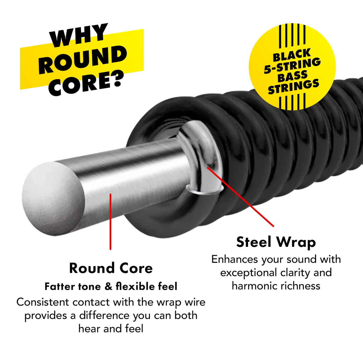 Dr Strings Bass Strings, Black Beauties Bass Black Coated Nickel Plated Bass Guitar Strings On Round Core