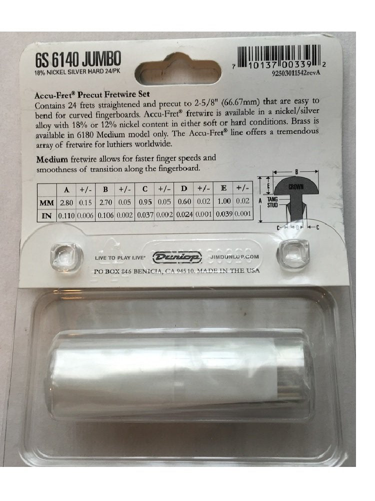 Dunlop Accu-Fret Fretwire Is Manufactured From A Durable Nickel/Silver Alloy And Delivers A Warm And Clear Tone-The Preferred Brand For Guitar Builders And Repairmen Worldwide. These Are Medium 18% Nickel Silver Wires Precut To 2 5/8 Inches (66.67Mm). Medium Fretwires Allow For Faster Fingerspeeds And Smoothness Of Transition Along The Fingerboard.