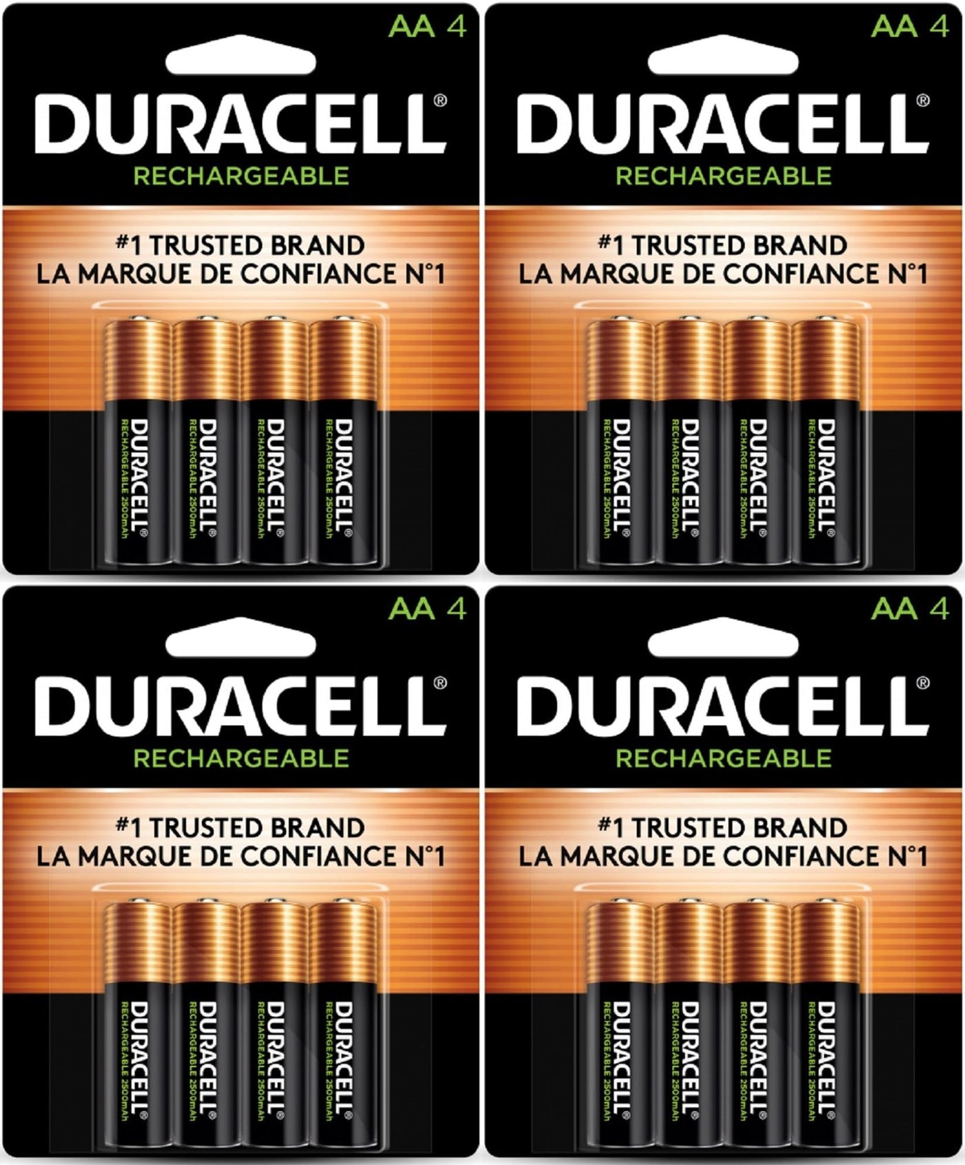 Q: What is the capacity of the Duracell AA rechargeable batteries?A: The Duracell AA rechargeable batteries have a capacity of 2400mAh, providing long-lasting power for your devices.