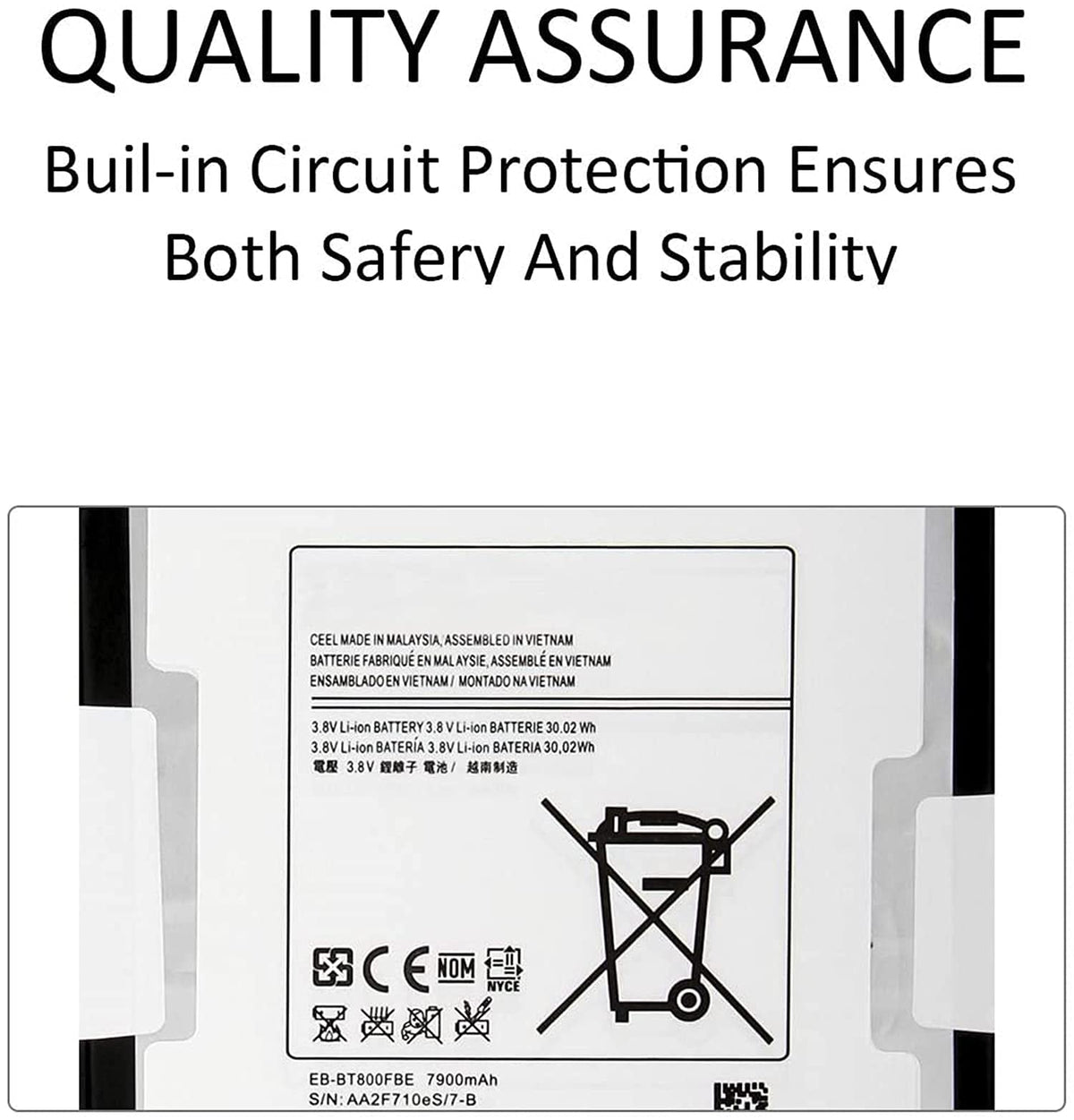About Us:We Are A Professional Manufacturer In The Field Of Power Tool Batteries, Laptop Batteries, And Charger.We Are Committed To Providing High Quality, Competitive Cost, And Superior Performance Battery And Best Service To Customers.Specification:Battery Type: Li-Ionvoltage: 3.8Vcapacity: 30.02Wh/7900Mah Warranty: 1 Year Warranty!Compatible Part No :Eb-Bt800Fbe Eb-Bt800Fbu Eb-Bt800Fbc Eb-Bt800Fbb Eb-Bt800Fbj Eb-Bt800Fbk Fit Laptops:&Nbsp;Samsung Galaxy Tab S 10.5 Inch Tabletsamsung Galaxy Tab S 10.5 Sm-T800 (Wifi)Samsung Galaxy Tab S 10.5 Sm-T805 T805C T805M T805S T805W T805Y (3G, 4G/Lte &Amp; Wifi)Samsung Galaxy Tab S 10.5 Sm-T807 T807A T807T T807P T807V (3G, 4G/Lte &Amp; Wifi)Samsung Galaxy Tab S 10.5 Sm-T807P (Sprint Cdma)Samsung Galaxy Tab S 10.5 Sm-T807V (Verizon Cdma)Samsung Galaxy Tab S 10.5 Sm-T801 If You Are Not Satisfied With Your Purchase In Any Way.Please Give Us An Opportunity To Try And Make It Right,We Believe That Communication Is The Best Way To Solve Problems.If You Have Any Questions Or Need Any Help,Please Feel Free To Contact Uswe Will Try Our Best To Make You Satisfied