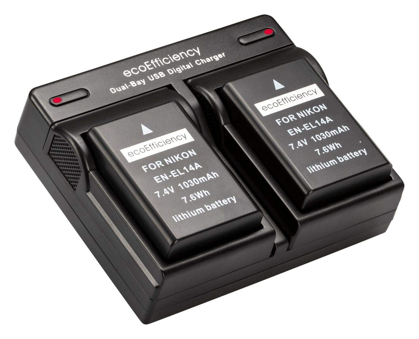 Package Includes: 2 Ecoefficiency Enel14A Batteries Dual Usb Battery Charger