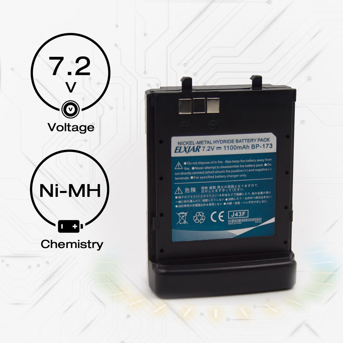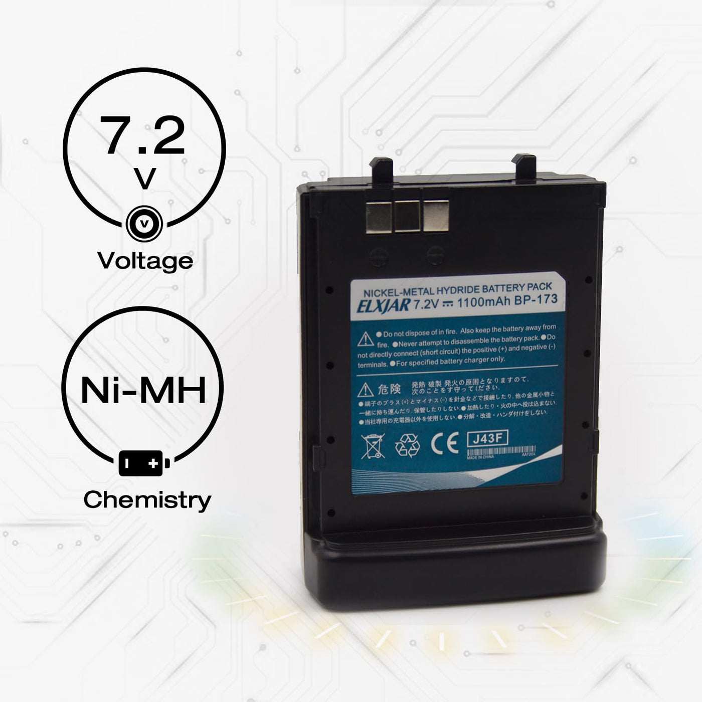 Elxjar (2 Pack) 7.2V 1100Mah Bp 173 Ni Mh Battery Replacement For Icom Ic T7H, Ic T22A, Ic W32A, Ic W31, Bp 180 Two Way Radios