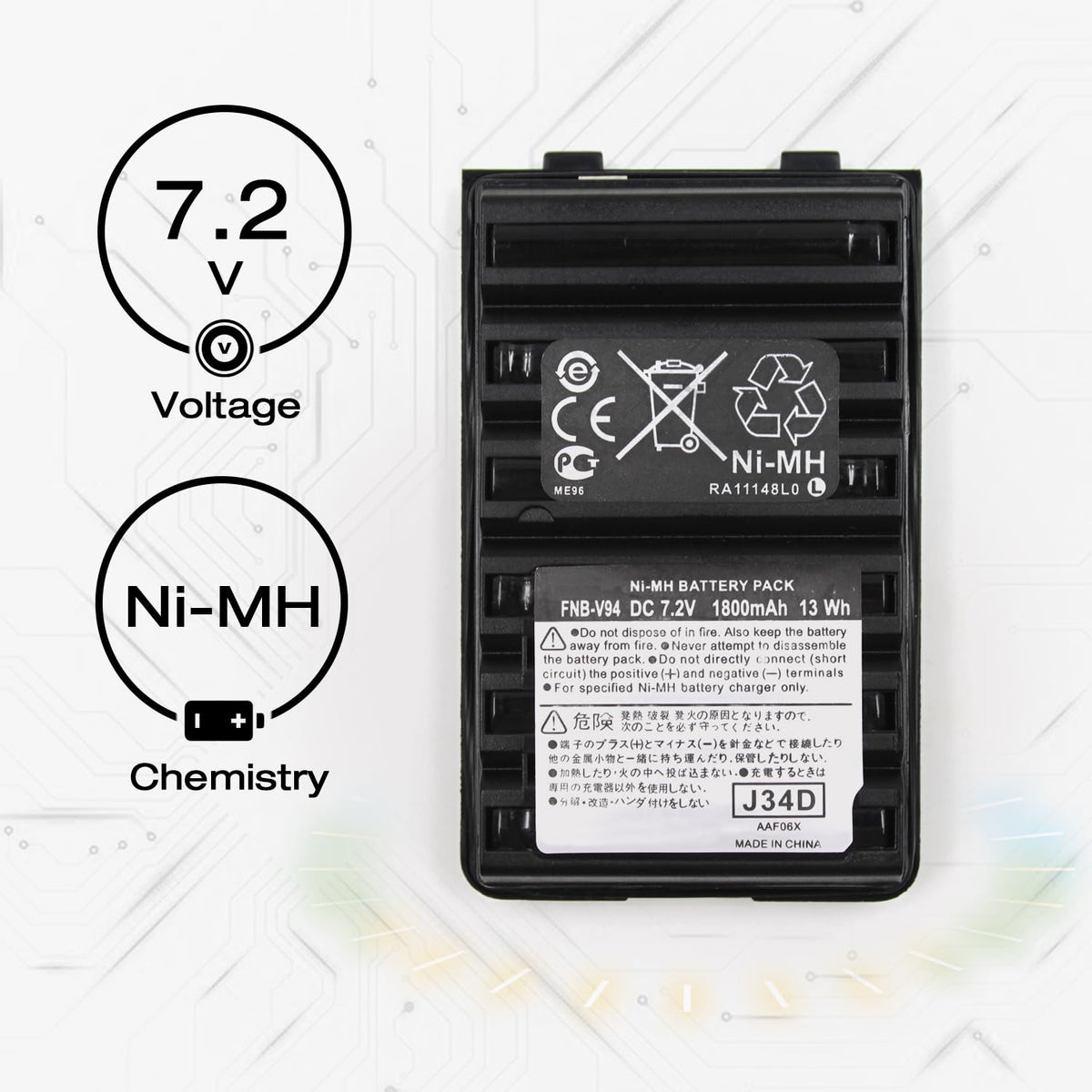 Elxjar 7.2V 1800Mah Ni Mh Battery Pack Replacement For Yaesu/Vertex Radios Fnb 83 Fnb V94 Fnb V57 Fnb 64 Ft 60R Vx 150 Vx 160 Vx 170 Vx 180 Vx 410 Vx 420 Vx 420A Ft 270 Two Way Radio