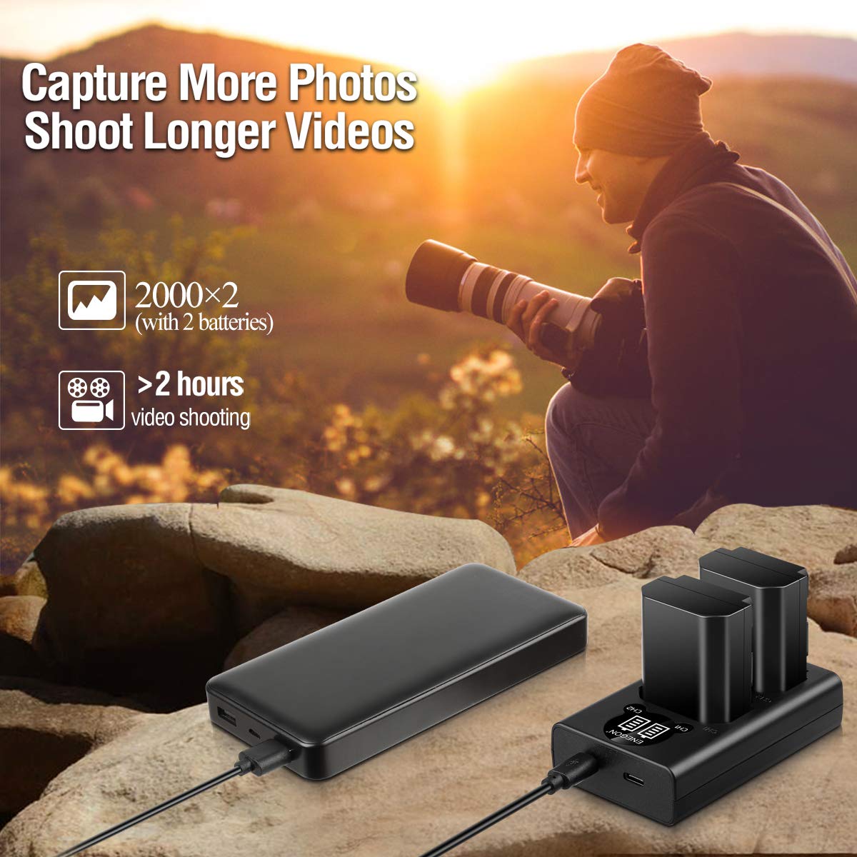 Enegon Np Fz100 Battery Replacement And A7Iii Battery Charger For Sony A7 Iii, Sony Alpha A7R Iii, A7R Iv, A9, A6600, Alpha 9, A