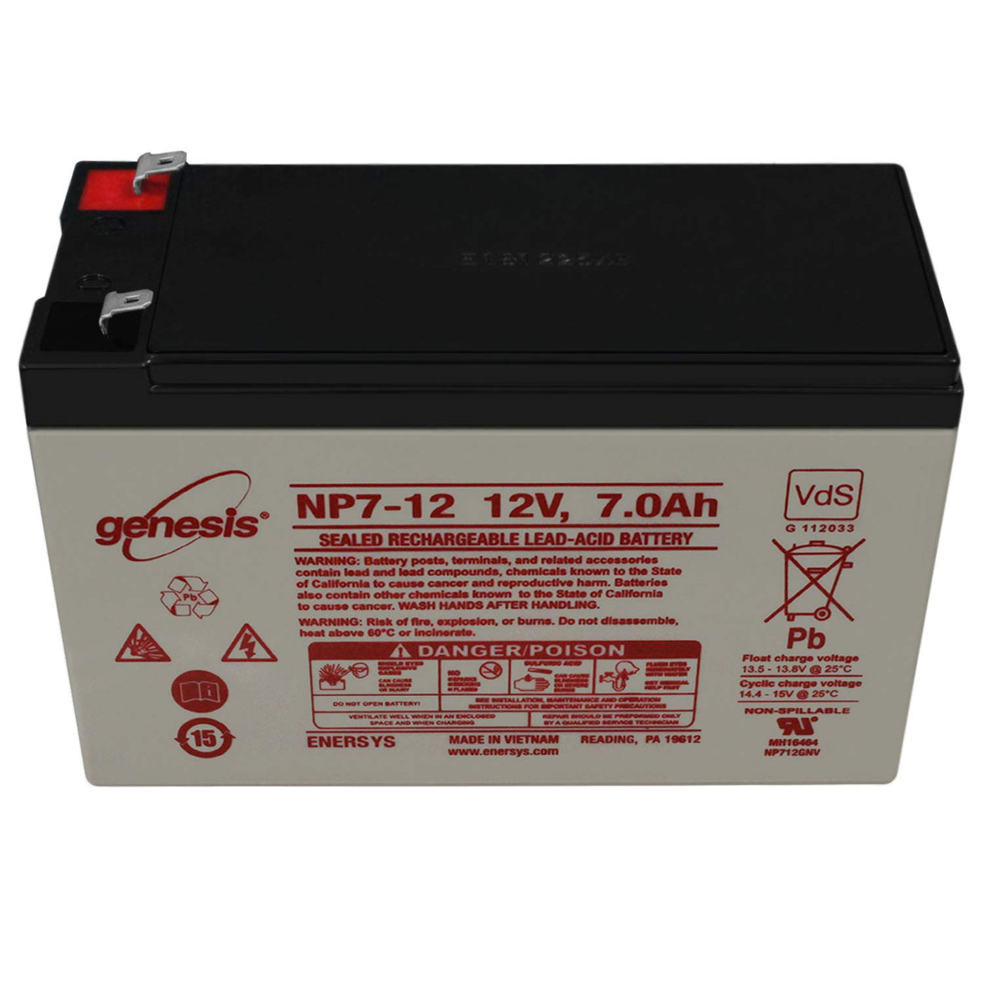 Enersys - Genesis Np7-12 12V 7Ah F1 Rechargeable (Sla) Sealed Lead Acid Battery.