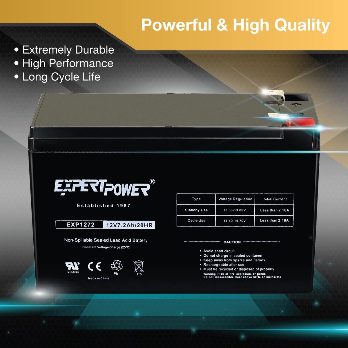 Q: Is the ExpertPower® battery maintenance-free?A: Yes, the ExpertPower® 12V 7.2AH battery is maintenance-free and valve regulated, providing ease of use without the need for regular upkeep.