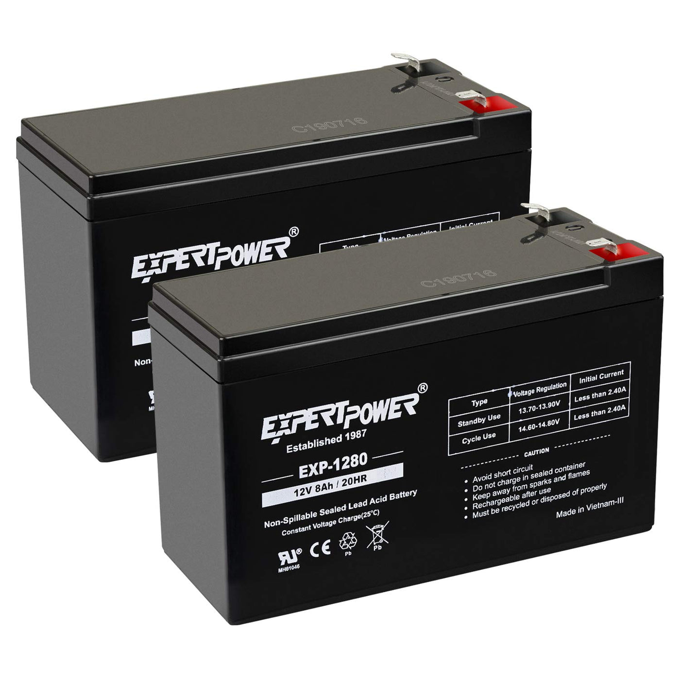 Package Includes: (2) X 12 Volt 8 Amp Expertpower Sealed Lead Acid Batteries. Expertpower Batteries Are Made With The Highest Quality Of Materials Available. Our Lead Acid Batteries Are Typically Used For: Home Alarm Systems, Uninterruptible Power Supply(Ups), Lighting Equipment, General Electronics, Home Security Systems, Emergency Systems, Medical Devices, Electric Scooters, Solar Collectors, Wheelchairs And Many Other Applications. Whether It'S The Security Of Your Home, The Mobility Of Your Machine, Or Even Just A Personal Hobby, Be Sure To Use One The Most Efficient Batteries Available.