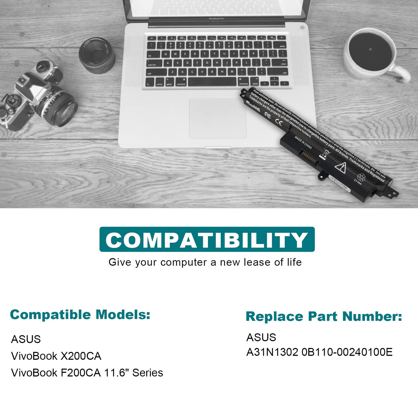 Laptop Battery Work With The Following Laptop Computers: Asus Vivobook X200Ca F200Ca 11.6'' Series Laptop Battery Part Number X200Ca-6E X200Ca-9B X200Ca-9E X200Ca-1A X200Ca Series X200Ca-6D X200Ca-9A X200Ca-9D X200Ca-Db017 X200Ca-1B 200Ca-Ct161H Ar5B125 Atheros R202Ca Sonic Master R202Ca Vivobook F200Ca Vivobook X200Ca X200Ma