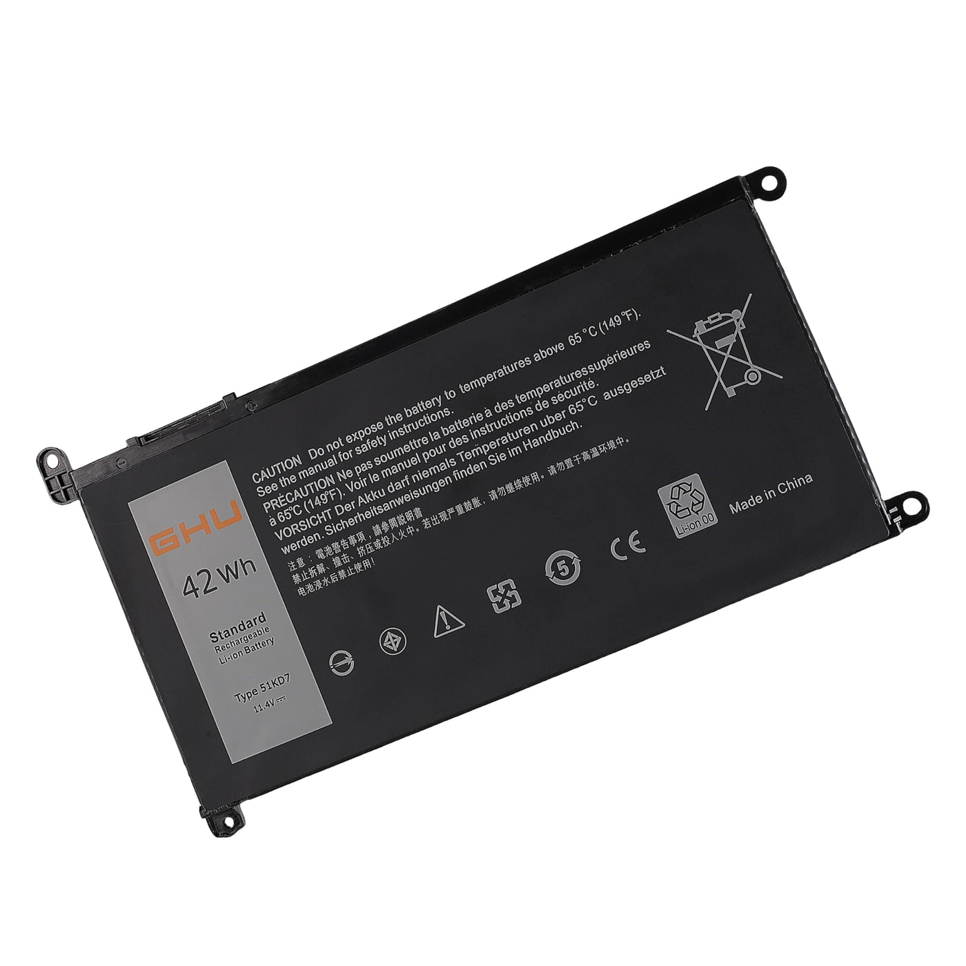 Q: What safety certifications does the GHU battery have?A: The GHU battery has passed rigorous UL testing and is also CE, FCC, and RoHS certified. These certifications ensure that the battery meets high safety and quality standards, making it a reliable choice for your Dell Chromebook.