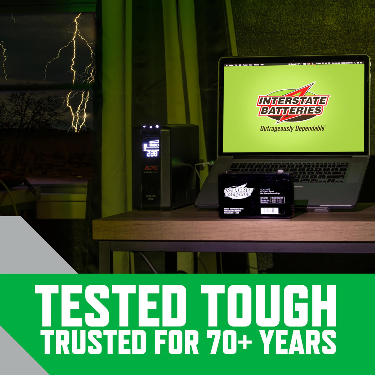 Interstate Batteries, 12 Volt Battery 8Ah Seal Lead Acid (Sla) (Agm), Backed By A 12 Month Warranty. Contact Interstate Batteries On Amazon For Warranty Questions | The Compatibility Fit Guide Can Be Found Under Product Guides & Documents. Great Replacement 12V Battery For Several Applications Like Apc Ups And Other Backup Power Systems, Medical Devices, Emergency Lighting And More | 12V Rechargeable Battery, Maintenance-Free And Spill Proof Because Of The Agm And Vrla (Valve Regulated) Technology That Eliminates Spills And Overpressure | Fit Type: Universal Fit, 12V Batteries. Dimensions: 5.94'' X 2.56'' X 3.70'' (Lxwxh) Terminal: .250 Faston Spades/ F2 | Most Trustworthy Power Source: Since 1952, Interstate Batteries Purpose Has Been To Deliver The Most Outrageously Dependable Source Of Power To The World. Our Customers Come First, So We Strive To Create A Positive Experience For All. We Recycle More Batteries Than We Sell; Please Return To An Interstate All Battery Center Near You So We Can Continue Recycling