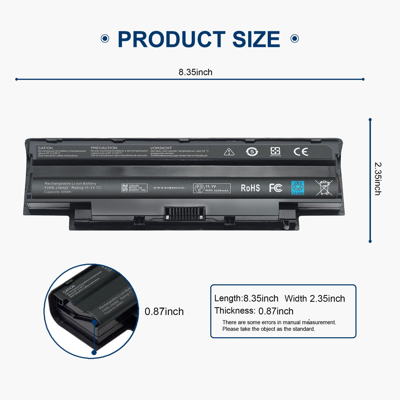 Q: Is the J1KND laptop battery compatible with my Dell Inspiron model?A: Yes, the J1KND battery is compatible with various Dell Inspiron models including N5010, N5110, N4010, and others. It is also compatible with several Dell Vostro models such as 1440, 1450, and 1550. Please check the provided compatible model list to ensure your specific model is included.