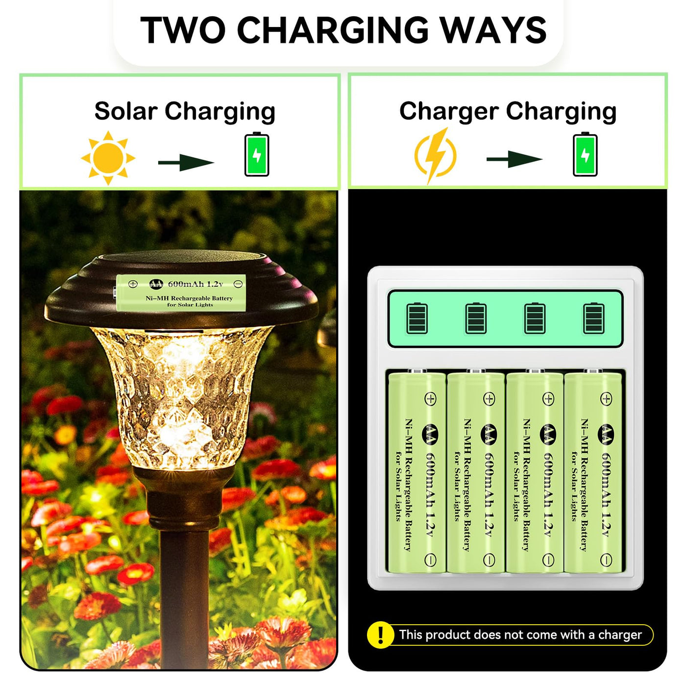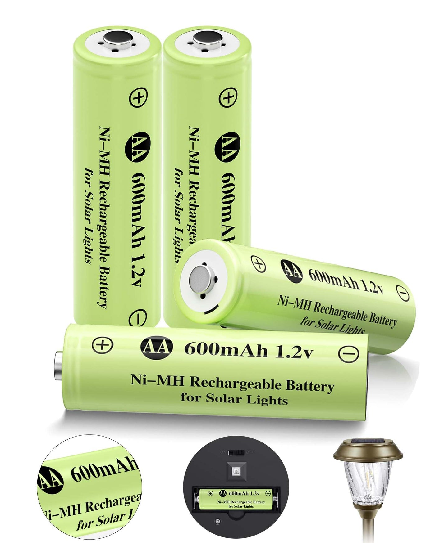 Jiajax Ni-Mh Rechargeable Aa Batteries, Aa 600Mah 1.2V Solar Batteries For Garden Landscaping Outdoor Solar Lights, String Light