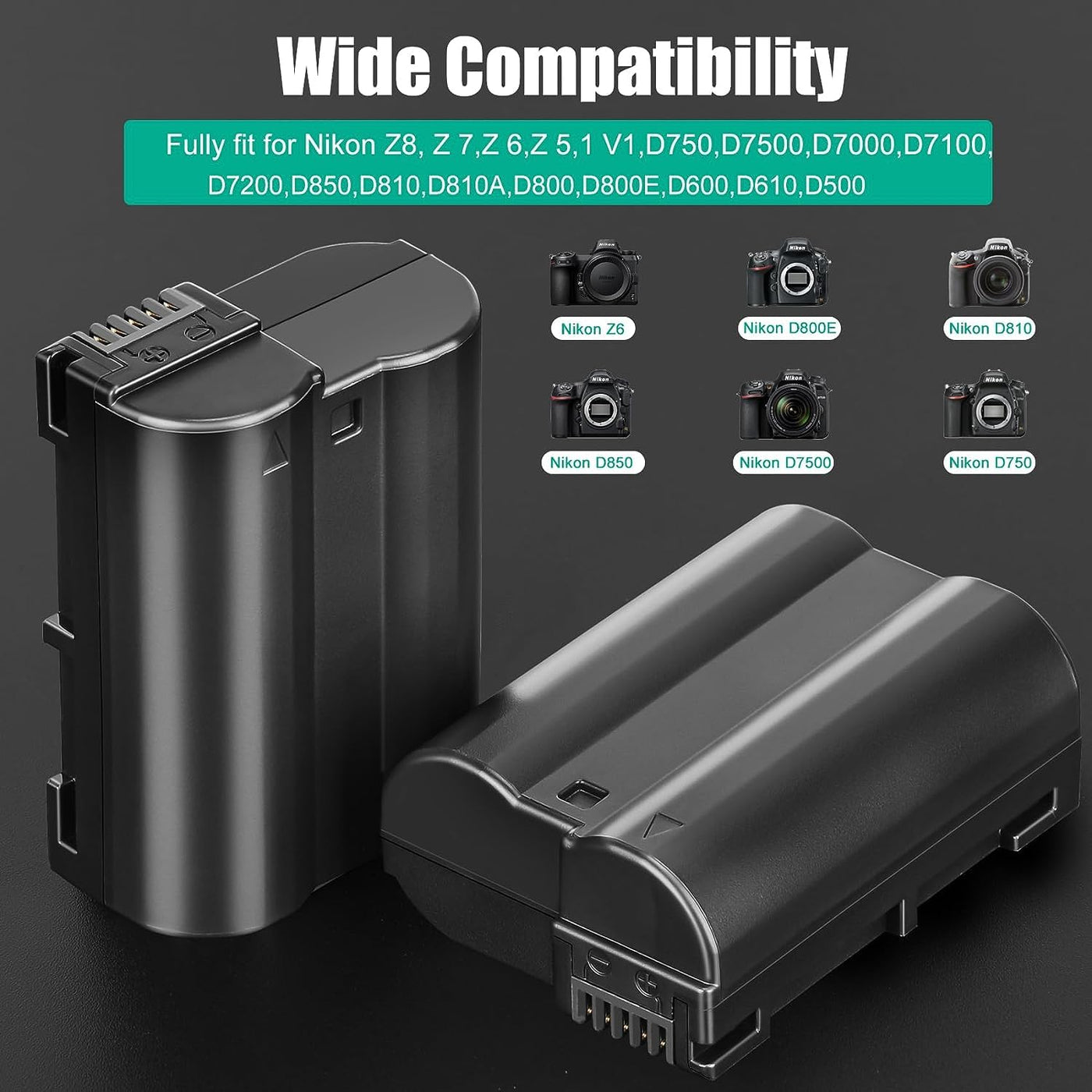 Jyjzpb 2 Pack En El15B En El15C Batteries And Charger Case For Nikon D7500, D750, Z6, Z6 Ii, Z7, Z7Ii, Z8, D500, D600, D610, D81