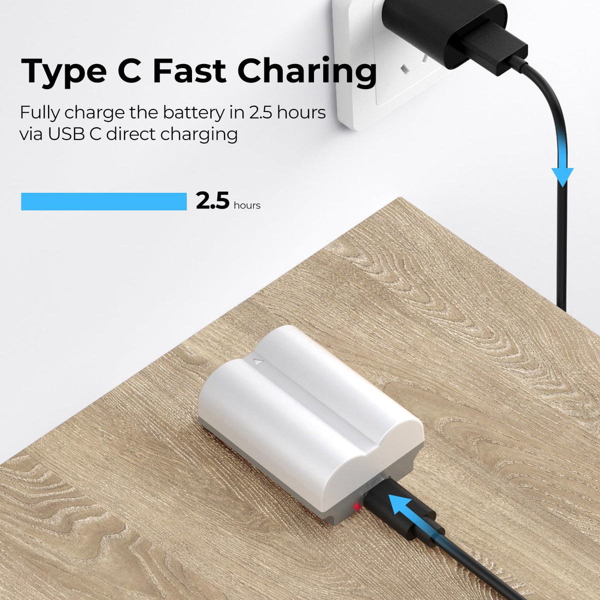 Q: How long does it take to charge the K&F Concept NP-W235 Battery?A: The K&F Concept NP-W235 Battery can be fully charged in approximately 2.5 hours using a USB-C charging cable, which allows for fast and convenient charging without the need for an extra charger.