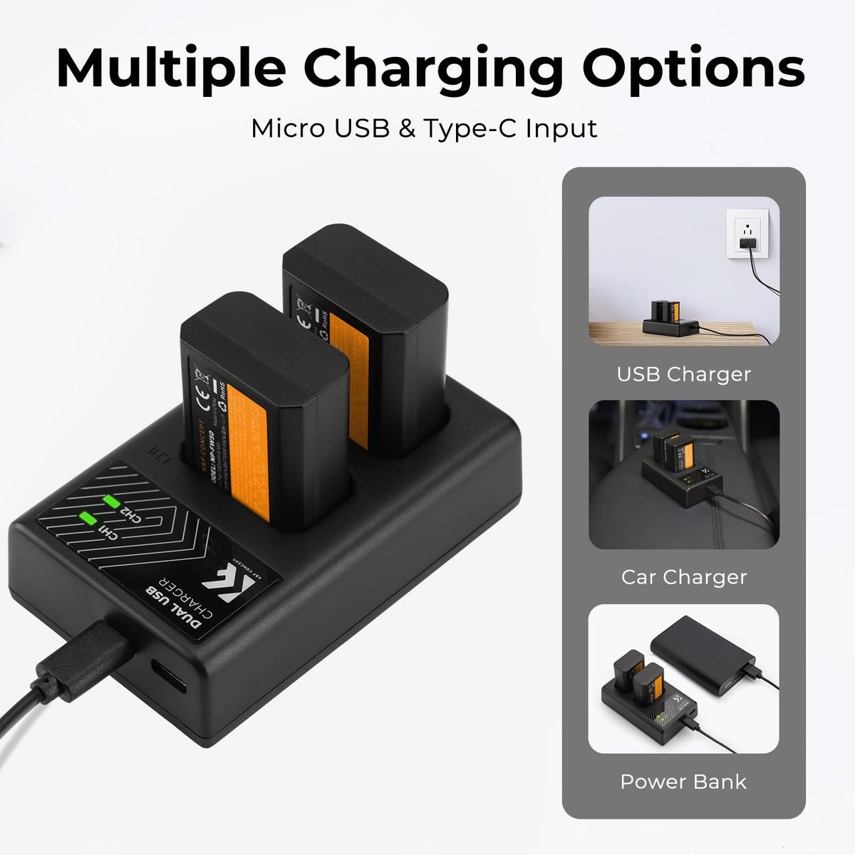 K&F Concept Np Fw50 Battery Charger Set With Dual Slot Charger For Sony Zv E10, A7, A7Ii, A7Rii, A7Sii, A7S, A7S2, A7R, A7R2, A5