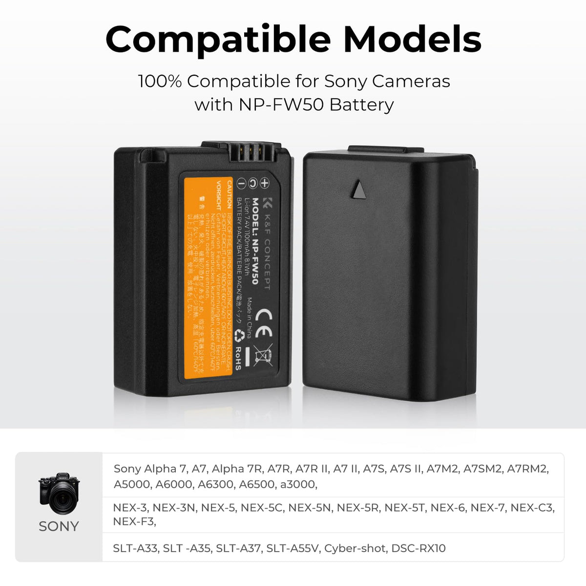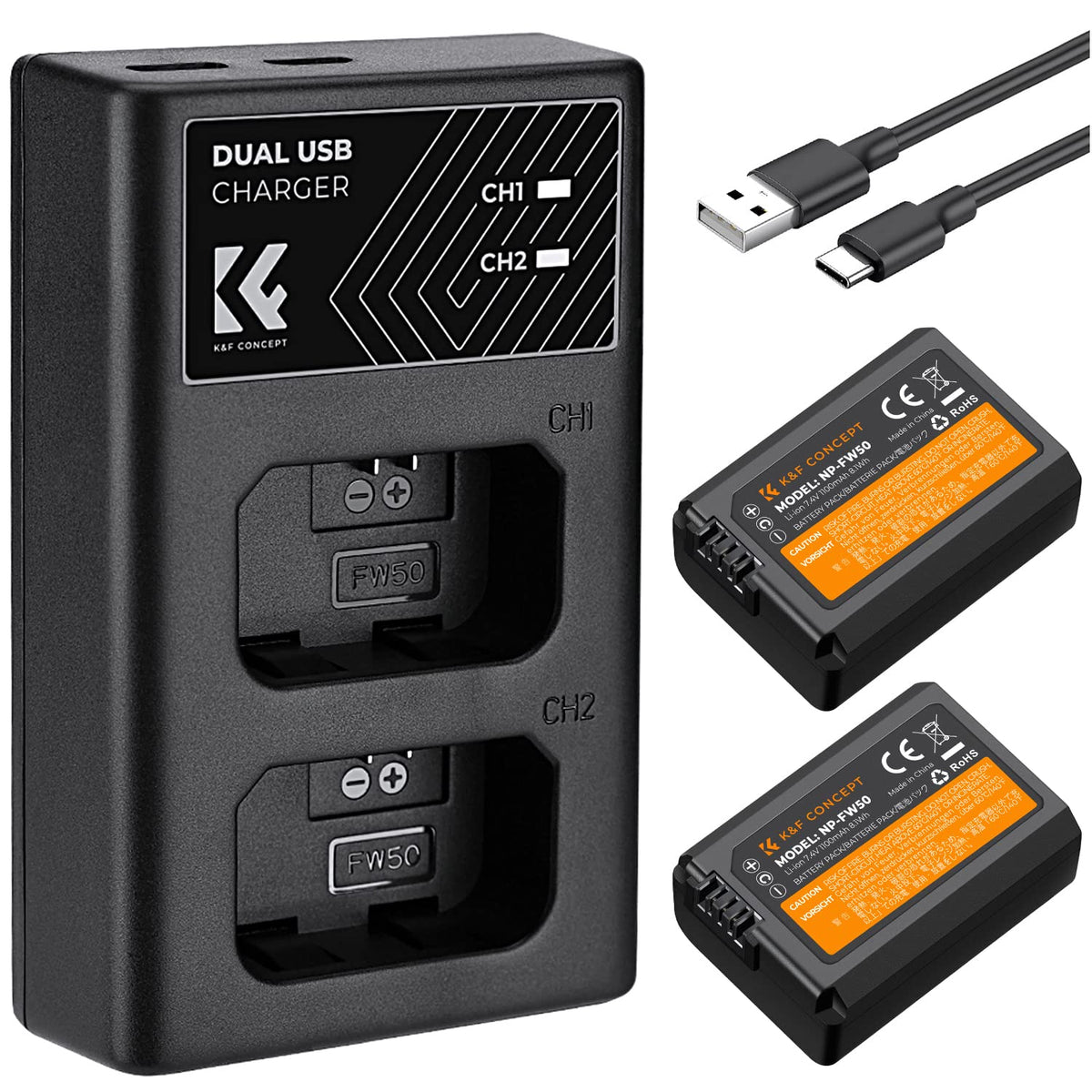 K&F Concept Np-Fw50 Battery Charger Set With Dual Slot Charger For Sony Zv-E10, Alpha 7, A7, A7Ii, A7Rii, A7Sii, A7S, A7S2, A7R, A7R2, A5000,A6000, A6500, A6300, Nex-3, Nex-5