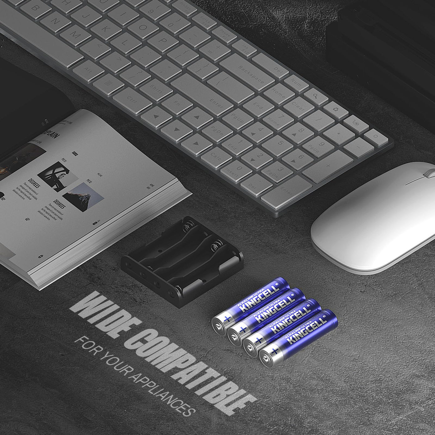 Q: What devices are compatible with KINGCELL AAA batteries?A: KINGCELL AAA batteries are widely used and compatible with various devices including TV remotes, clocks, gaming controllers, flashlights, wireless keyboards, and kids' toys.