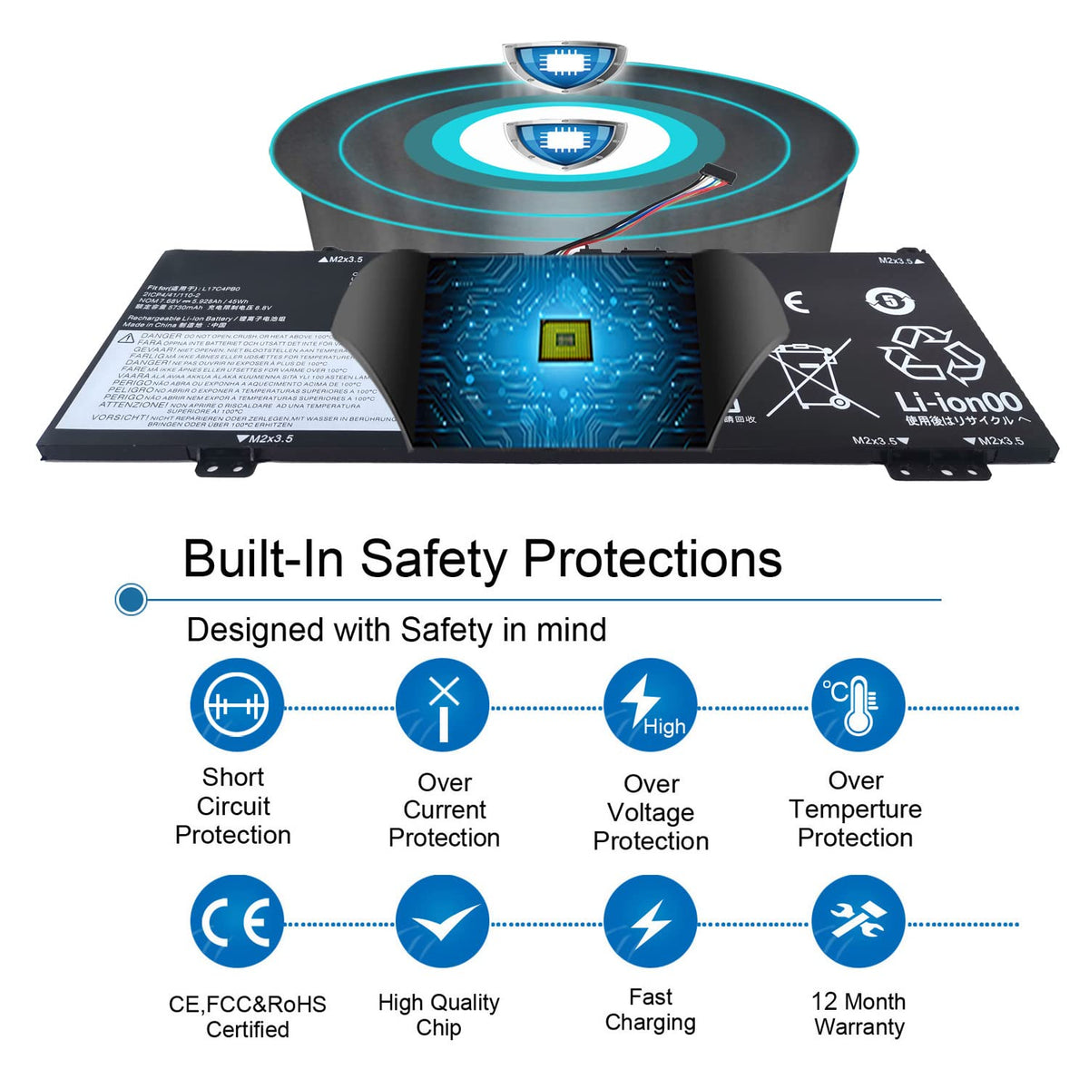 Q: What safety features does the L17C4PB0 battery have?A: The L17C4PB0 battery includes multiple safety features such as overcharge and overdischarge circuit protection, over-temperature and short-circuit protection, ensuring safe operation and reducing the risk of damage to your laptop.