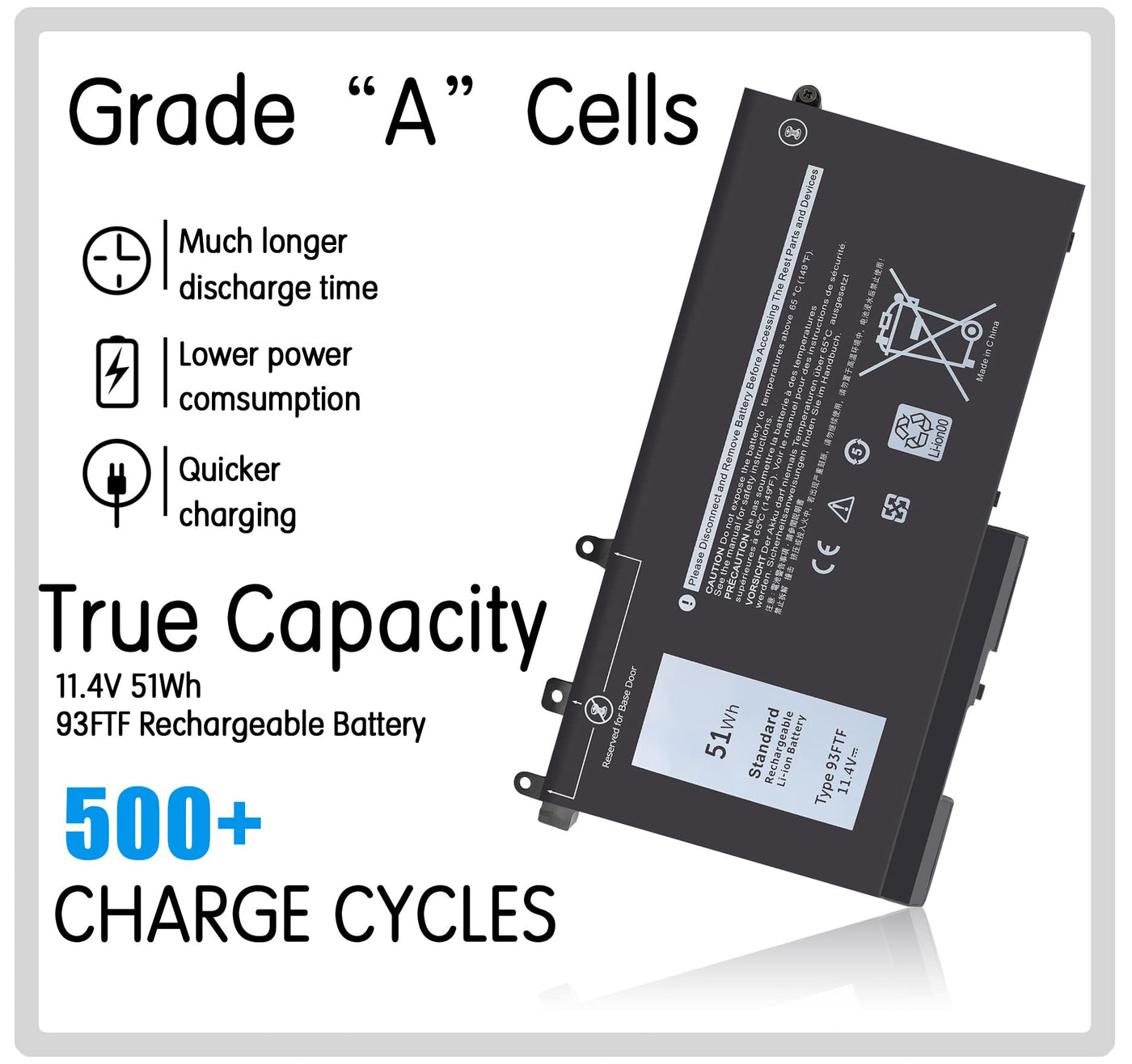 Specifications: Battery Type: Li-Ion Battery Condition: Brand New Battery Voltage: 11.4V Battery Capacity: 51Wh Compatible With Part Number: 93Ftf D4Cmt Gjknx 3Dddg 083Xpc 83Xpc 4Yfvg 451-Bbzt Compatible With Dell Laptop Models: (Use ''Ctrl+F To Find Your Model Quickly) For Dell Precision 15 3520 3530 M3520 M3530 Series For Dell Latitude 12 5280 E5280 5288 E5288 Series For Dell Latitude 14 5480 E5480 5488 E5488 Series For Dell Latitude 14 5490 E5490 Series For Dell Latitude 14 5491 E5491 5495 E5495 Series For Dell Latitude 15 5580 E5580 Series For Dell Latitude 15 5590 E5590 For Dell Latitude 15 5591 E5591 Series Attention: The Dell Laptop Models On This Product Page Are Compatible With 4 Battery Models: Vg93N(92Wh 6-Cell), Gjknx(68Wh 4-Cell), 93Ftf(51Wh 3-Cell), 3Dddg(42Wh 3-Cell). Please Open The Back Cover Of Your Laptop To Check The Original Battery Size And Capacity Before Placing An Order. Please Scroll Down To The List To Purchase.