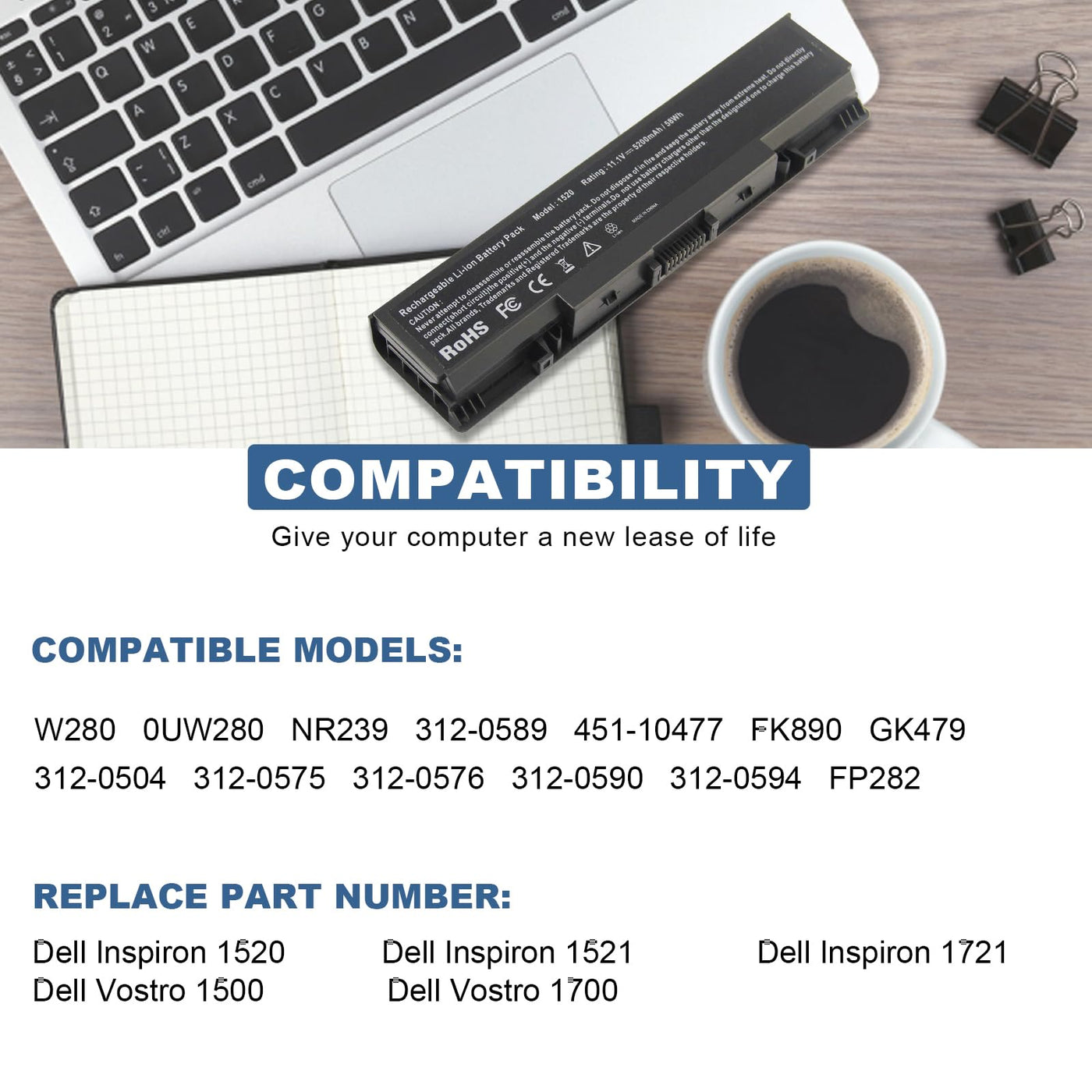 This Laptop Battery Is Compatible With Following Models: Inspiron 1520 1720 530S 1521 1721 Vostro 1500 Vostro 1700 Replacement For: 451-10477 Fk890 Fp282 Gk476 Gk479 312-0575 312-0576 312-0590 312-0594 312-0504 Fk890 Uw280 0Uw280 Nr239 312-0589