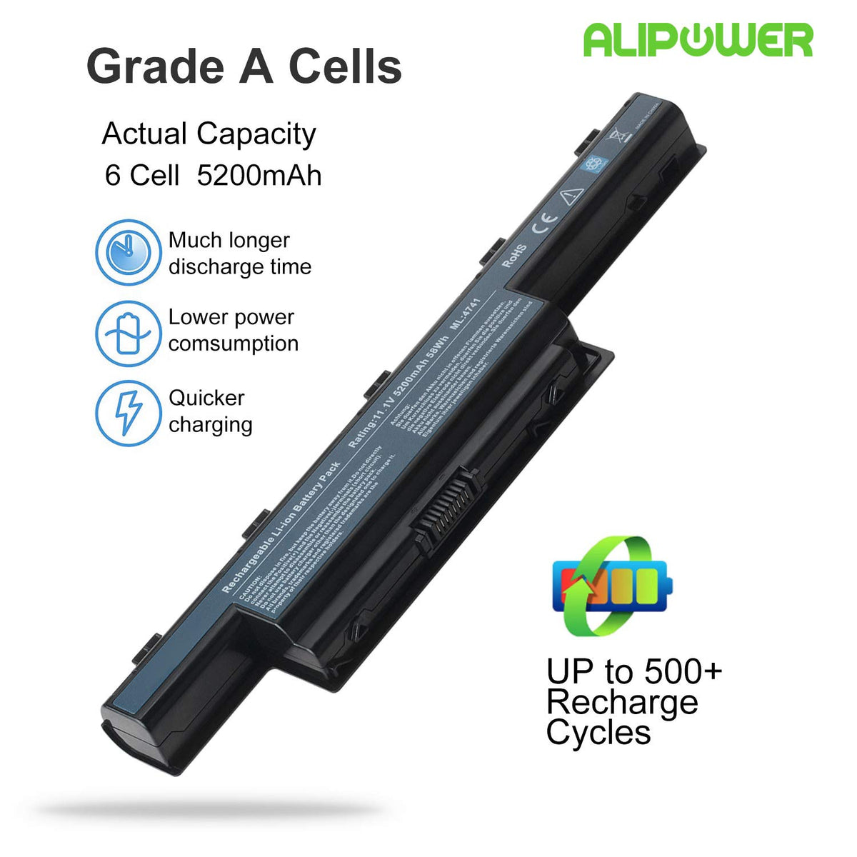 Alipower New Laptop Battery Replacement For Compatible As10D31 As10D51 5253 5251 5336 5349 5551 5552 5560 5733 5733Z 5740 5735 5735Z 5740G Replacement For Gateway Nv55C Nv50A Nv53A Nv59C - 12 Months Warranty Specification: Voltage: 11.1V Cells: 6-Cell Certification: Ce Fcc Rohs Color: Black Compatible Models: Acer Aspire 4250 4253 4339 4349 4551 4551G 4738 4738Z 4739 4739Z 4743 4743Z 4741 4750 4750G 4755 4755G 4752 4752G 4752Z 4771 5251 5252 5253 5336 5349 5551 5551G 5552G 5560 5560G 5733 5741 5741G 5741Z 5742 5742G 5742Z 5742Zg 5750 5750G 5750Z 5750Zg 5755 5755G 5736 5736Z 7741G 7741Z-5731 7741Z-4643 7551G 7552G 7750Z Replacement For Acer Travelmate 4740 4750 5335 5542 5542G 5735 5735Z 5740 5740G 5740Z 5742 5742G 5742Z 5742Zg 5744 5760 6495T 7740 7740G 7750 7750G 7750Z 8472 8473 8573 Tm5742 Gateway Nv57H Nv55S Nv50A Ne56R Nv51B Nv75S Nv77H Ne51B Nv76R Nv52L Nv73A Nv79C Nv56R Nv49C Alipower Warranty 12 Months Hassle-Free Warranty Service.We Provide Best Prices Possible On The Highest Quality Products And The Most Popular Brands. Please Check If This Battery Is Compatible With Your Computer Before Purchasing.