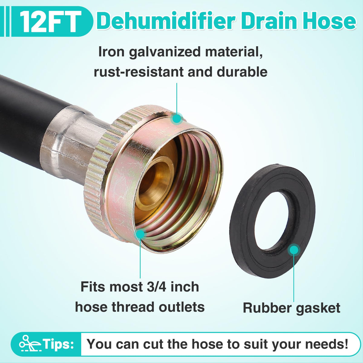 Leakproof Dehumidifier Drain Hose 3/4'' Fht 12 Ft Thickened Dehumidifier Hose With Rustproof Durable Connector, No Kink And Ea