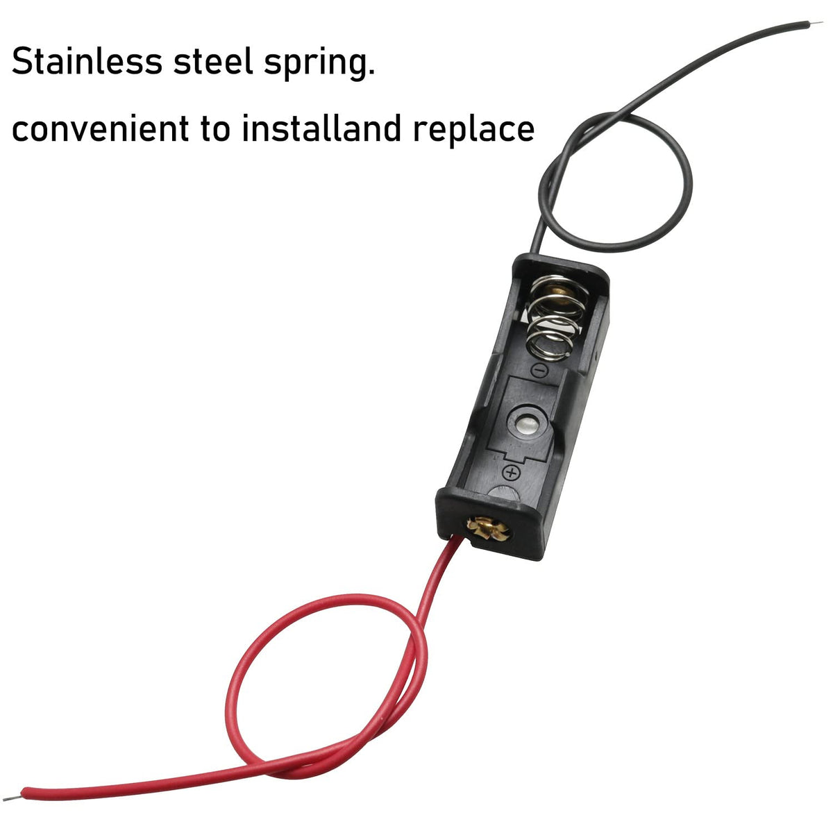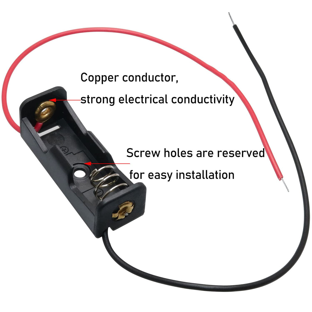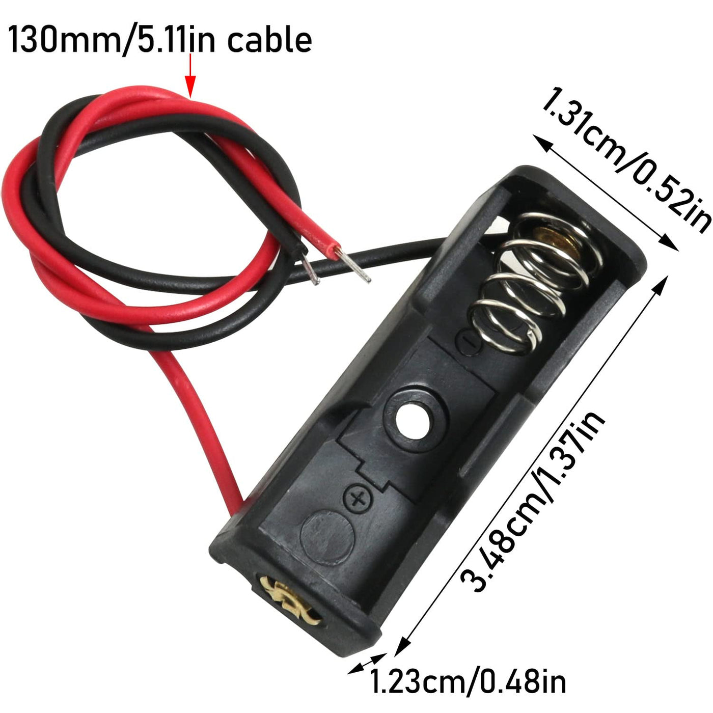 Specification: 1.Battery Holder Type: 23A Battery Holder, 12V A23 Battery Holder With Lead 2.Voltage Output Of A 23A Battery Holder: 12V, 1X 12V 23A Battery=12V Battery Box 3.Dimensions Of 23A Battery Holder With Lead: (L*W*H)/1.370'' X 0.516'' X 0.484''/3.48Cm X 1.31Cm X 1.23Cm 4.23A Battery Holder Lead: All A23 Battery Boxes With Leads, They Are Tin-Plated Wire Ends 5.The Wire Length Of 23A Battery Holder: 5.9''/15Cm 6.The Diameter Of The Wire Of The A23 Battery Holder (Calculated Based On The Pvc Insulation Around The Wire): 0.0393''/1Mm 7.A23 Battery Holder Wire Color: Red And Black, The Red Wire Is Connected To The Positive Electrode Of The 12V Battery Box, And The Black Wire Is Connected To The Negative Electrode Of The 12V Battery Box. 8.A23 Battery Holder Package Box Color: Black 9.23A Battery Holder Box Material: Plastic Abs 10.23A Battery Holder With Lead Weight: 0.105Oz/3G 11.If The 12V Battery Box Has An On/Off Switch: None 12.If The 12V Battery Box Has A Lid: None Package Contents: 10 X 12V 23A Battery Holder With Wire.