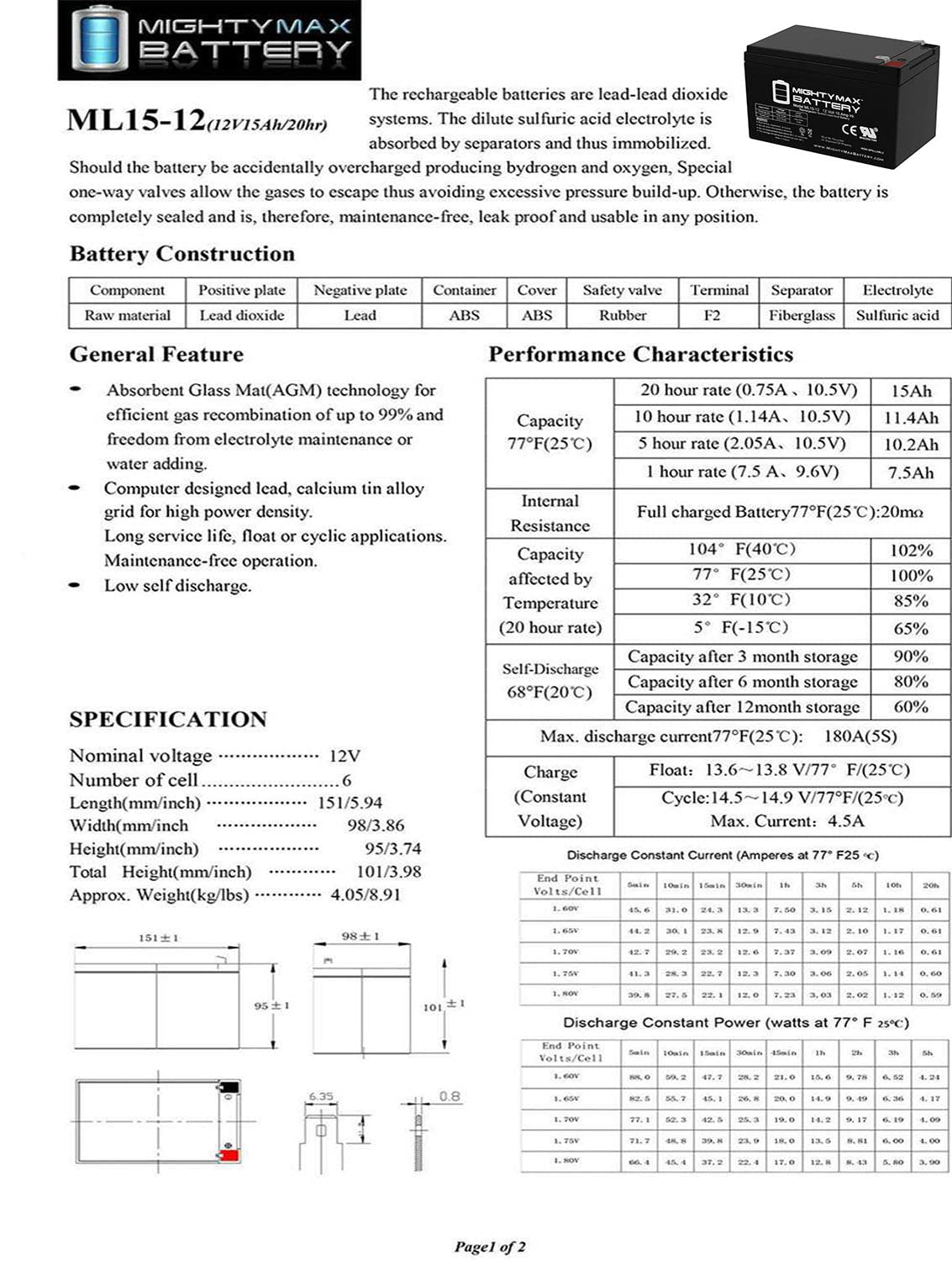 Mighty Max Battery 12V 15Ah F2 Replacement Battery For Peg Perego John Deere Gator