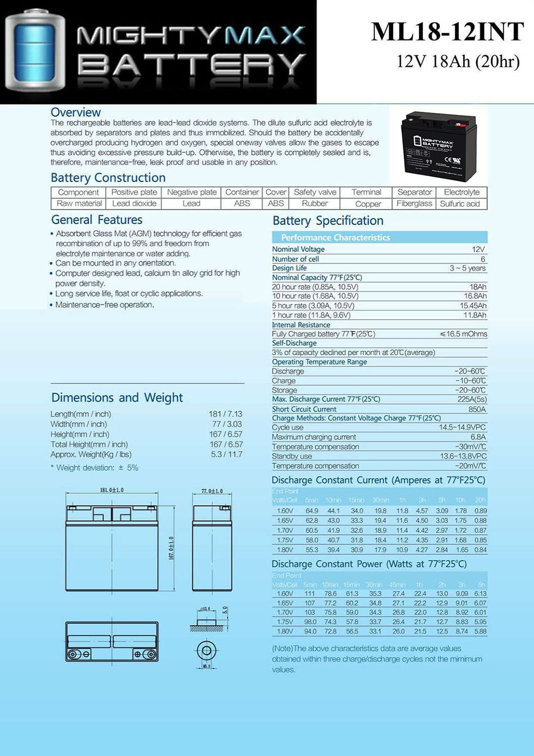 Mighty Max Battery 12V 18Ah Int Replacement Battery Compatible With Interstate Dcm0018
