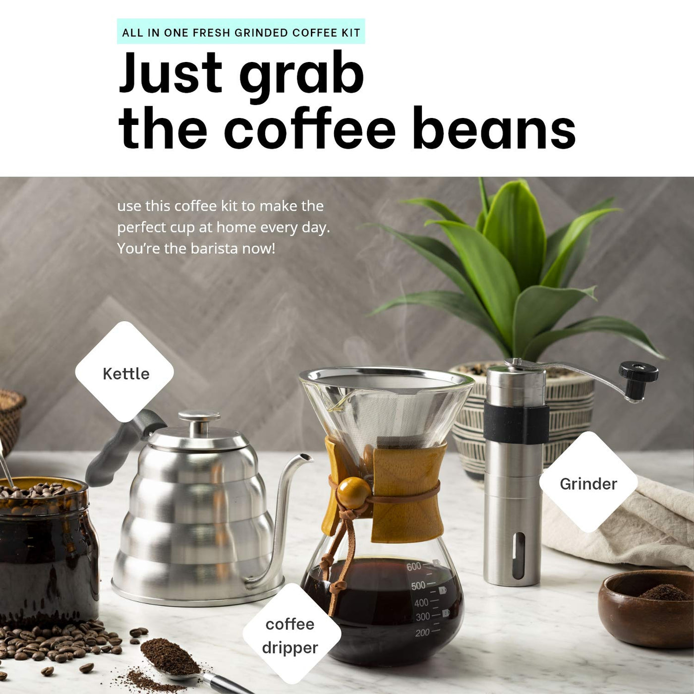 ? Do You Love Good Quality Coffee And Would Like To Start Creating A Perfect Cup At Home Every Day Rather Than Taking A Trip To Your Local Coffee Shop?? Are You Searching For A Gift For A Friend Or Family Member That Appreciates Specialty And Small-Batch Coffee?If You Answered Yes To Either Question, Then Mitbak Pour Over Coffee Maker Set Is An Excellent Choice!I Think Most Of Can Agree; Coffee Is Fantastic. It Not Only Helps Give Us A Little Jolt In The Morning But Has An Array Of Health Benefits Surprisingly.We All Have Our Favorite Brand We Tend To Gravitate To Or Local Coffee Shop, Which Makes A Cup Just Right.Use These Coffee Supplies To Take Your Coffee Game To The Next Level.Single Serve Coffee And Big, Coffee Makers Have Their Place,But This Coffee Kit Will Help You Make The Freshest, Best-Tasting Coffee Youve Ever Had. All From The Comfort Of Your Own Home!Coffee Maker Set Includes:?? Stainless Steel Gooseneck Kettle W/ Thermometer.?? Stainless Steel Coffee Mill Grinder.?? Paperless Glass Coffee Brewer.Your Favorite Barista Is Going To Be Sad!When You Use This Kit To Start Crafting The Perfect Cup Of Coffee From Home, Your Go-To Coffee Shop Is Going To See A Lot Less Of You, Thats For Sure.You Wont Have To Leave Early For Work To Make A Quick Stop For A $3-$4 Coffee Anymore!Excellent Gift For All Coffee Lovers!Are You Trying To Think Of A Unique Gift Idea For A Friend Or Family Member That Theyre Sure To Love? Youve Found It.Anyone That Loves Coffee Also Loves Our Pour Over Coffee Kit.Its Great For Birthdays, Holidays, Housewarming, Anniversaries, Graduation, Weddings, And So Much More!The Kit Comes In A Beautiful Gift Box Thats Ready To Be Wrapped.Ready To Take Your Coffee Game To The Next Level? Buy Today And Enjoy It Everyday.