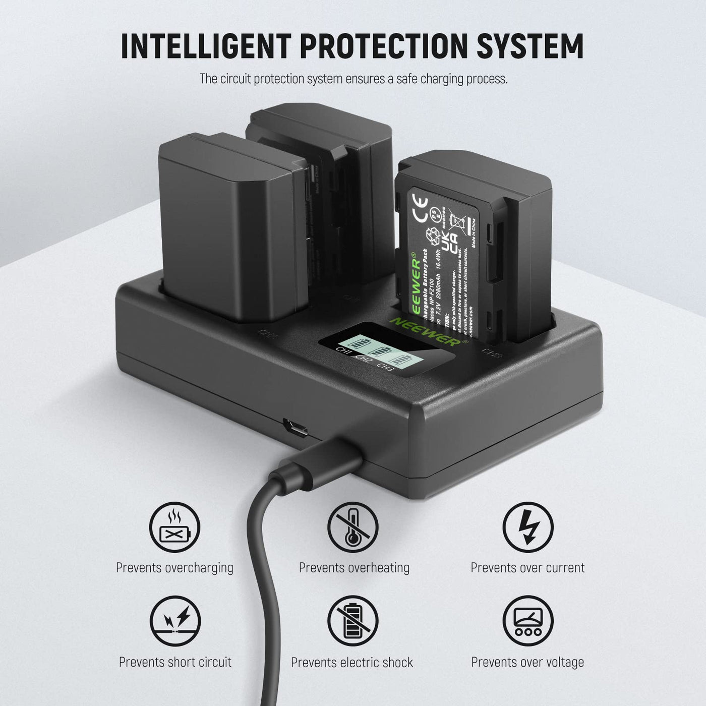 ?Sufficient Battery Power For Your Camera? Three 2280Mah Np-Fz100 Replacement Batteries Offer Abundant Battery Power For Photographers, Vloggers, And Filmmakers Who Work On Outdoor Creation And Help Them Capture Every Moment That Is Too Precious To Miss | ?Triple Slot Usb Charger? This Triple Usb Charger Allows You To Simultaneously Charge 3 Batteries At Home, At The Office, Or On The Go. A Backlit Lcd Screen Makes You Understand The Current Charging Status Of Each Battery, Even In The Darkness | ?Efficient Charging Process? Equipped With Two Input Ports (Micro Usb And Usb Type C), The Charger Can Connect With Two Types Of Charging Cables And Receive Power From Wall Chargers, Car Chargers, Portable Chargers, And Computers | ?Full Charging Protection? Designed With An Advanced Protection System, The Charger Can Effectively Prevent Overcharge, Overtemperature, Overcurrent, Overvoltage, Electric Shocks, And Short Circuits | ?Fully Compatible With Sony Camera Powered By Np-Fz100 Battery? Neewer Np-Fz100 Batteries Are Compatible With Sony A1, A9, A9 Ii, A7R Iii, A7R Iv, A7S Iii, A7 Iii, A7 Iv, A6600, A7C Cameras And Vg-C3Em, Vg-C4Em Grip. Note: When Fx3, Fx30, A7C Ii, A7Cr And Zv-E1 Cameras Are Updated To The Latest Firmware Version, The Battery Can Still Power The Camera, Yet The Battery Level Will Not Be Displayed On The Screen.