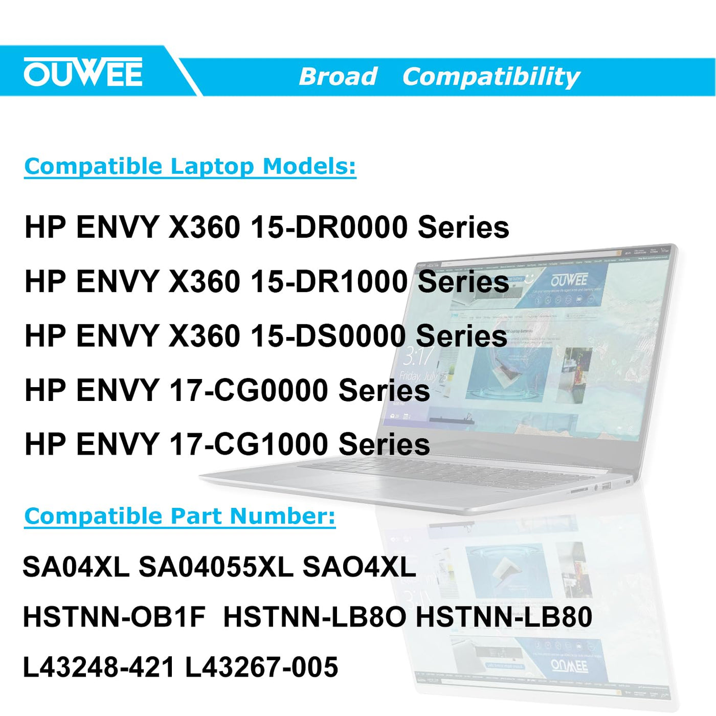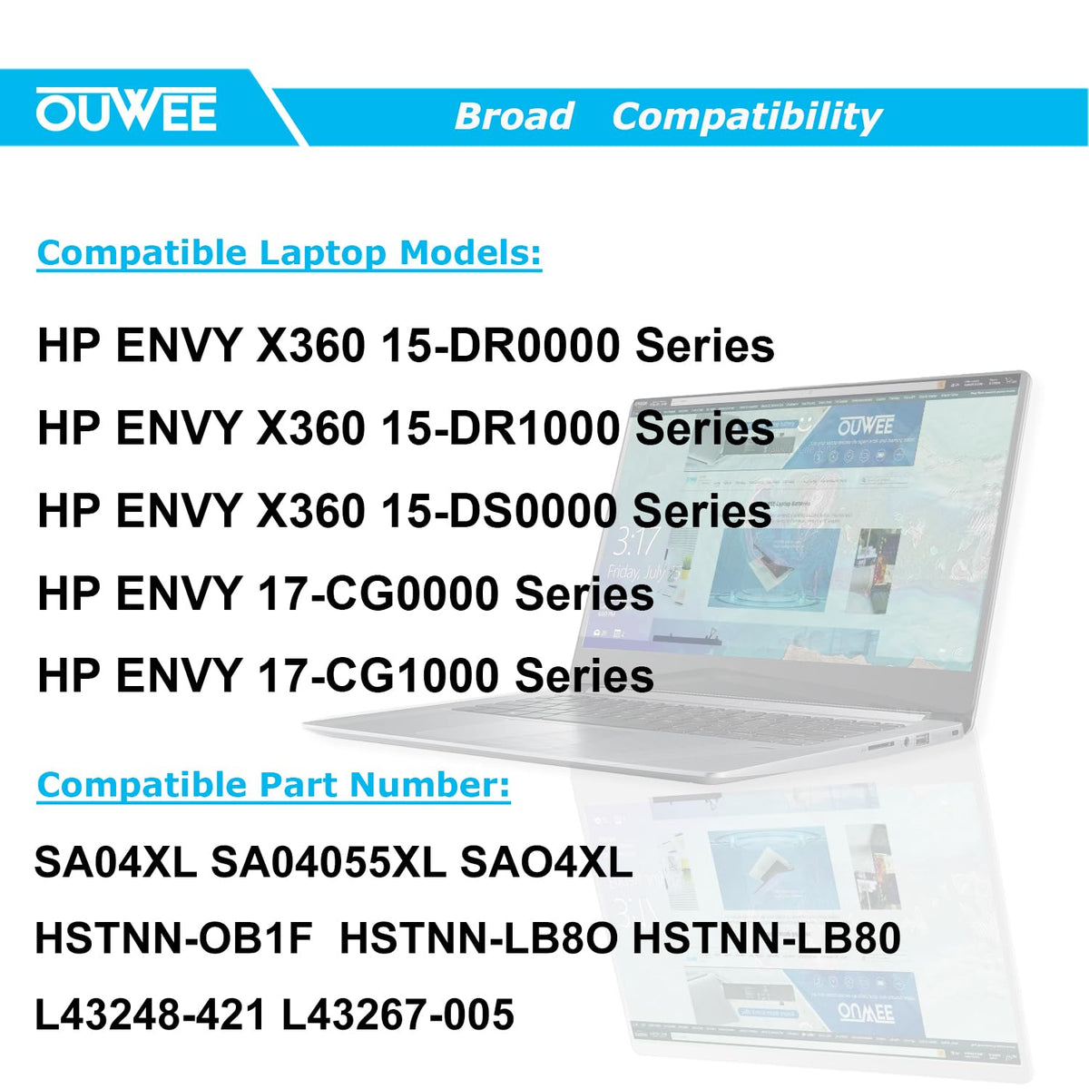 Ouwee Sa04Xl Laptop Battery Compatible With Hp Envy X360 15 Dr 15 Dr0010Tx Series Notebook Hstnn Ob1F Hstnn Ob1G Hstnn Ub7U L432