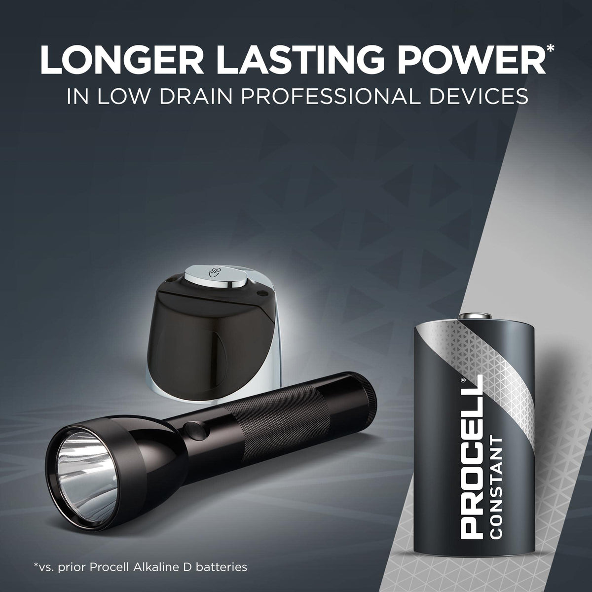 Procell Alkaline Constant D Industrial Batteries Are Ideal For Powering Low-Drain Professional Devices Which Require Constant Current Over Long Periods Of Time Such As Alarm Panels, Security Keypads, Automatic Faucets, Remote Controls, Flashlights, And More. Guaranteed 10 Years In Storage. Delivers Longer Lasting Power (Vs. Prior Procell Alkaline D Batteries) In Low Drain Professional Devices That May Result In Fewer Battery Replacements And Can Lead To Savings On Operating Costs Associated With Battery Replacement. Operating Temperatures From -4F To 129.2F. You Can Use Up To 30% Fewer Batteries By Switching To Procell Constant For Low-Drain Devices. Manufactured Using Superior Cell Design (Vs. Prior Procell Alkaline D Batteries) To Ensure High-Quality Cell Construction. Economically Packaged In Bulk. Available In Aa, Aaa, 9V, C, And D Sizes.