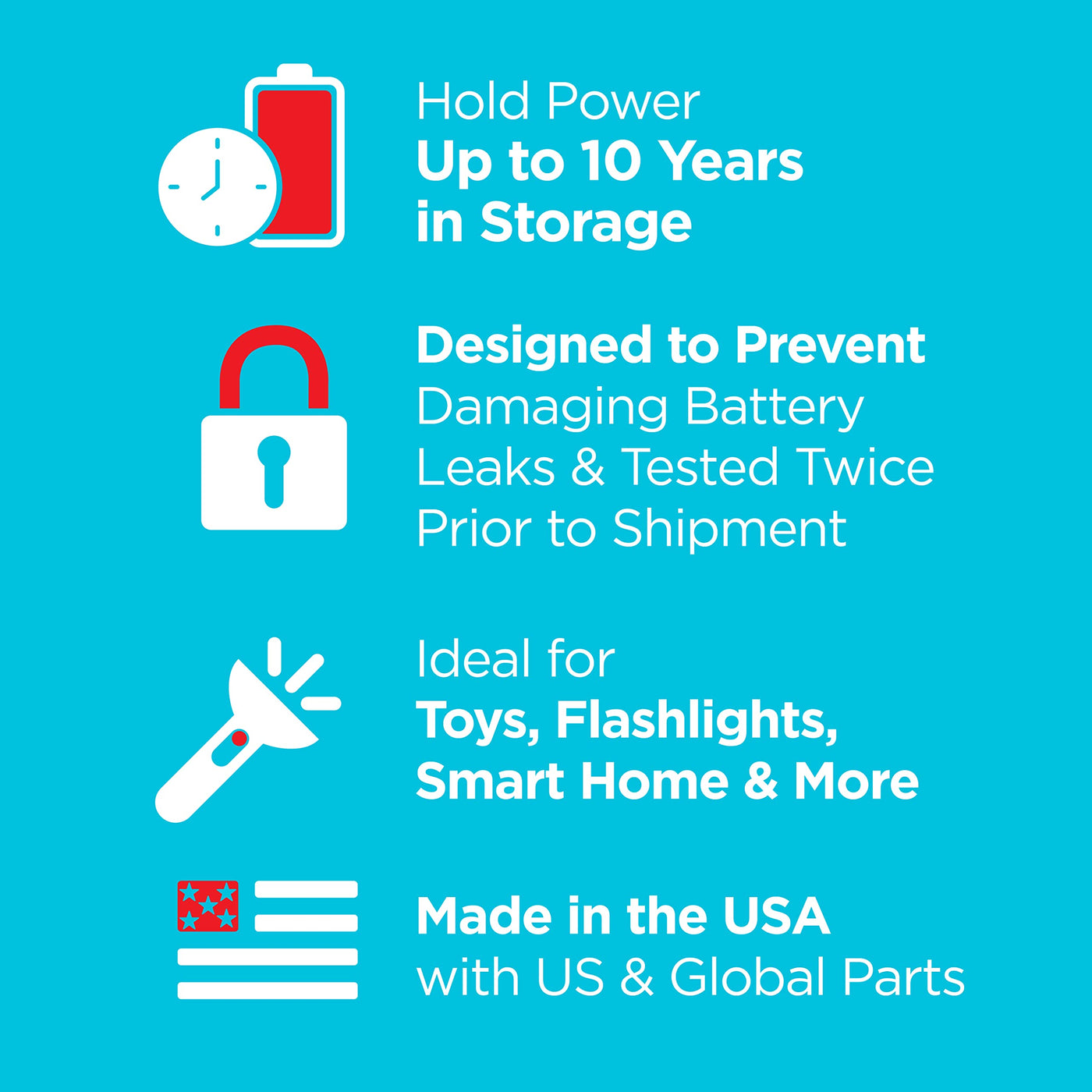 These Mercury-Free Alkaline Batteries Are Guaranteed Fresh For 10 Years And Made In The Usa.