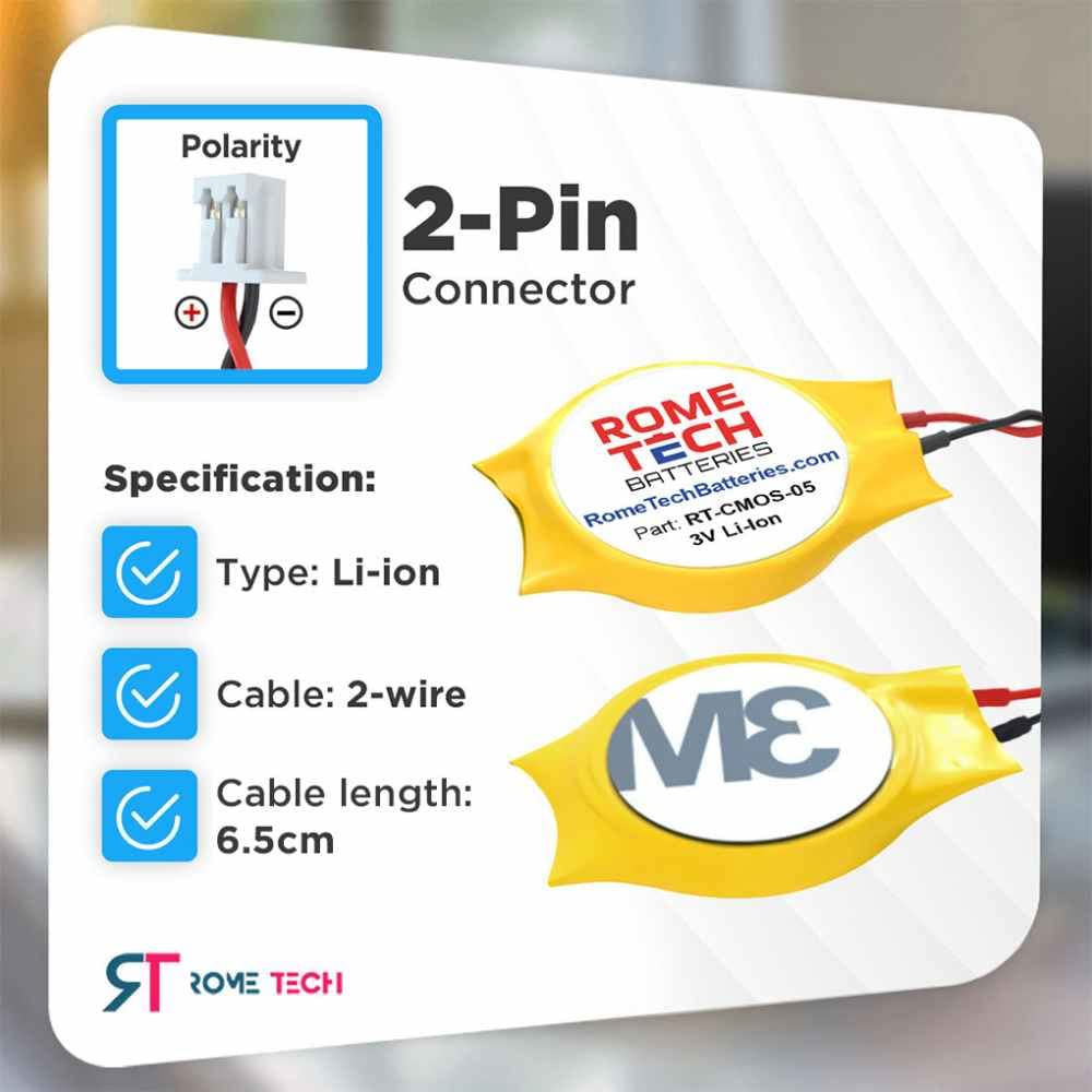 Rome Tech Bios Cmos Battery Best Suits To Replace Your Broken Or Non-Working Old Battery - We Provide Premium Quality Only | Cr2032 Laptop Battery Compatible With Dell Precision M20 / Dell Precision M2300 / Dell Precision M4800 / Dell Studio 1435 / Dell Vostro 1710 / Dell Vostro 7590 | Enjoy Extended Reliability Of The Rtc Battery And Heat Shrink Of A High Caliber - The Cmos Laptop Battery Will Last You For A Long Time | The Size Of The Cmos Battery Is Extremely Small - Will Fit In Almost Any Electronic Device Requires 3V Battery Connector With 2 Pins And 2 Wires | Quick And Simple Battery Installation Takes Only 10 Minutes Of Your Time. Try Our Customer Service For Resolving Any Issues During Battery Replacement