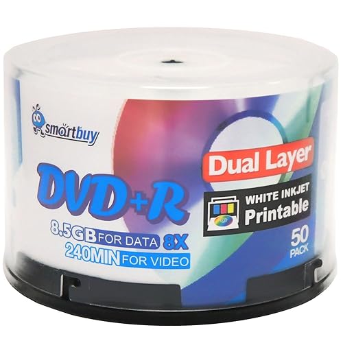Seyoo Smart Buy 50 Pack Dvd+R Dl 8.5Gb 8X Dvd Plus R Double Layer Printable White Inkjet Blank Data Recordable Media 50 Discs Sp