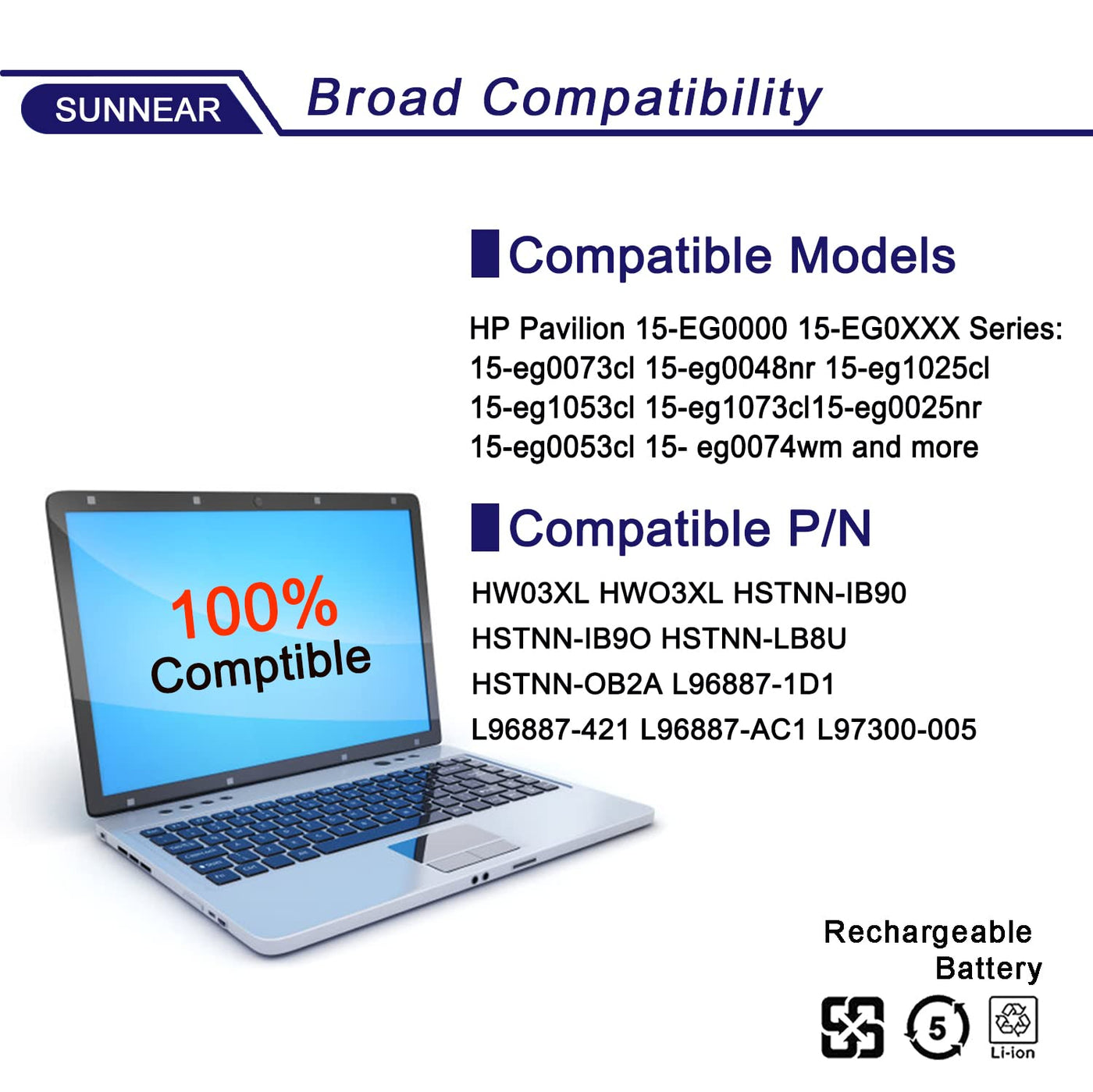 Sunnear Hw03Xl Laptop Battery Replacement For Hp Pavilion 15 Eg 15 Eg0073Cl 15 Eg0048Nr 15 Eg1025Cl 15 Eg1053Cl 15 Eg1073Cl 15 E