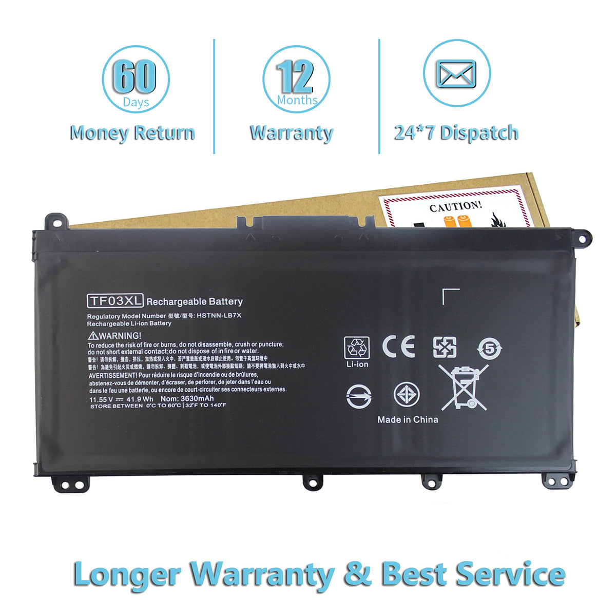 Voltage: 11.55V Capacity: 3630Mah/41.9Wh Replacement: 12 Month Replacement Condition: 100% New From Manufacturer, Grade A Cell Compatible Part Numbers: 920046-121 920046-421 920046-541 920070-855 Hstnn-Ib7Y Hstnn-Lb7J Hstnn-Lb7X Hstnn-Ub7J Tf03041Xl Tf03Xl Tpn-Q188 Tpn-Q189 Tpn-Q190 Tpn-Q191 Tpn-Q192 Tpn-Q196 Compatible Hp Laptop Models:(''Ctrl''+''F'') 14-Bf000 Series: 14-Bf040Wm 14-Bf050Wm 14-Bf118Tu 14-Bf120Tu 14-Bf125Tx 14-Bf146Tx And More 14-Bk000 Series: 14-Bk061St 14-Bk091St 14-Bk063St 14-Bk0Xx And More 14-Bp000 Series: 14-Bp005La And More 14-Cd0000 Series: 14-Cd2053Cl 14-Cd1055Cl 14-Cd1075Nr 14-Cd1010Nr 14-Cd0003Dx 14-Cd0002Ne 14-Cd1033Nr And More 14M-Cd0000 Series: 14M-Cd0Xxx 14M-Cd0001Dx 14M-Cd0003Dx 14M-Cd0006Dx 14M-Cd0005Dx 14M-Cdooo3Dx And More 115-Cc000 15T-Cc000 Series: 15-Cc000No 15-Cc001Na 15-Cc001Nf 15-Cc001Ng 15-Cc001Ni 15-Cc001Nia 15-Cc001Nk 15-Cc001Nv 15-Cc001Nx 15-Cc002Ne 15-Cc002Ng 15-Cc002Ni 15-Cc002Nia 15-Cc002Nk 15-Cc002Nl 15-Cc002No 15-Cc002Nu 15-Cc002Nx 15-Cc002Ur 15-Cc003Nc 15-Cc003Ng 15-Cc003Ni 15-Cc003Nia 15-Cc003Nk 15-Cc004Nc 15-Cc004Ni 15-Cc004Nk 15-Cc004Nm 15-Cc004No 15-Cc004Nt 15-Cc004Nx 15-Cc004Ur 15-Cc005Na 15-Cc005Ng 15-Cc005Ni 15-Cc005Nk 15-Cc005Nl 15-Cc005Nm 15-Cc005No 15-Cc005Tu 15-Cc005Tx 15-Cc005Ur 15-Cc006Nc 15-Cc006Ng 15-Cc006Ni 15-Cc006Nk 15-Cc006Nl 15-Cc006No 15-Cc006Nx 15-Cc006Tx 15-Cc006Ur 15-Cc007Nc 15-Cc007Ng 15-Cc007Nt 15-Cc007Nx 15-Cd000 15Z-Cd000 Series: 15-Cd000Ng 15-Cd000Nu 15-Cd000Nv 15-Cd000Ur 15-Cd001Au 15-Cd001Ca 15-Cd001Ds 15-Cd001Ng 15-Cd001Nl 15-Cd040Wm 15-Cd0Xx 15-Cd042Nr 15-Cd051Nr 15-Cd067Ca 15-Cd075Nr 15-Cd005La 15-Cd040Wm 115-Ck000 Series: 15-Ck075Nr 15-Ck074Nr 15-Ck0Xx 15-Ck010Ca 15-Ck013Ca And More Hp Pavilion X360 17 Series: 17-Ar000 17Z-Ar0