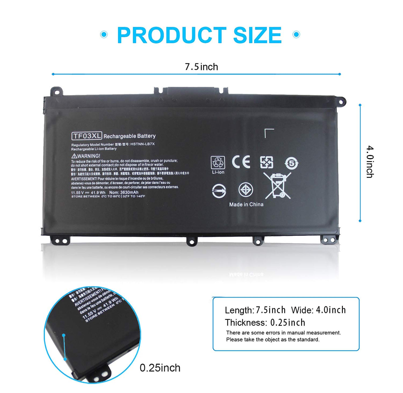 Q: What laptops are compatible with the TF03XL battery?A: The TF03XL battery is compatible with various HP Pavilion models, including the 15-CC series, 15-CD series, and 17-AR series. Specific models include HP Pavilion 15-CC000 series, 15-CD000 series, and 17-AR050WM, among others. Always check the compatibility list to ensure your laptop is supported.