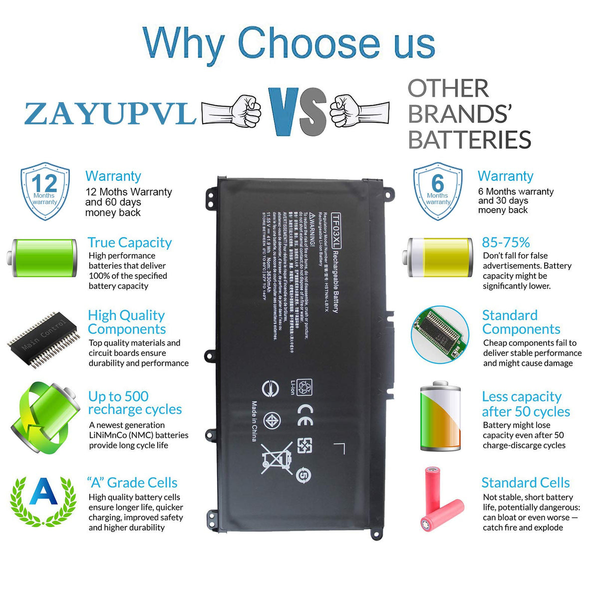 About Zayupvl Zayupvl Inc Is A Manufacturer Mainly Engaged In The Business Of Notebook Batteries And Power Adapters Cutting Out The Middlemen, We Directly Provide Goods For Factories And Consumers Meanwhile, We Carry Out Strict Control Over Our Product Quality And Offer Consumers Products With High Quality And Favorable Price Due To The Persistent Efforts Of Our Own Research And Development And After-Sales Service Teams, Customers Could Buy Our Products Without Any Concern About Our After-Sales Service Our Team Members Also Strive To Complete Each Order Happily, Making Our Customers Feel That Their Purchase Of Each Time Is Not Just A Transaction, But Also A Joyful Experience Compatible With Part Number : Tf03Xl Tf03041 Tf03041Xl 920046-121 920046-421 920046-541 920070-855 Hstnn-Ib7Y Hstnn-Lb7J Hstnn-Lb7X Hstnn-Ub7J Tpn-Q188 Tpn-Q189 Tpn-Q190 Tpn-Q191 Tpn-Q192 Tpn-Q196 Tpn-C131 Compatible With Laptop Models: Hp Pavilion 15-Cc Series 15-Cc000No 15-Cc001Na 15-Cc001Nf 15-Cc001Ng 15-Cc001Ni 15-Cc001Nia 15-Cc001Nk 15-Cc001Nv 15-Cc001Nx 15-Cc002Ne 15-Cc002Ng 15-Cc002Ni 15-Cc002Nia 15-Cc002Nk 15-Cc002Nl 15-Cc002No 15-Cc002Nu 15-Cc002Nx 15-Cc002Ur 15-Cc003Nc 15-Cc003Ng 15-Cc003Ni 15-Cc003Nia 15-Cc003Nk 15-Cc004Nc 15-Cc004Ni 15-Cc004Nk 15-Cc004Nm 15-Cc004No 15-Cc004Nt 15-Cc004Nx 15-Cc004Ur 15-Cc005Na 15-Cc005Ng 15-Cc005Ni 15-Cc005Nk 15-Cc005Nl 15-Cc005Nm 15-Cc005No 15-Cc005Tu 15-Cc005Tx 15-Cc005Ur 15-Cc006Nc 15-Cc006Ng 15-Cc006Ni 15-Cc006Nk 15-Cc006Nl 15-Cc006No 15-Cc006Nx 15-Cc006Tx 15-Cc006Ur 15-Cc007Nc 15-Cc007Ng 15-Cc007Nt 15-Cc007Nx 15-Cc007Tx 15-Cc007Ur 15-Cc008Nc 15-Cc008No 15-Cc008Nt 15-Cc008Nx 15-Cc008Tu 15-Cc008Tx 15-Cc008Ur 15-Cc009Ng 15-Cc009Nl Hp Pavilion 15-Cd Series:15-Cd000Ng 15-Cd000Nu 15-Cd000Nv 15-Cd000Ur 15-Cd001Au 15-Cd001Ca 15-Cd001Ds 15-Cd001Ng 15-Cd001Nl Hp Pavilion 17-Ar Series: 17-Ar007Ca 17-Ar050Wm And More