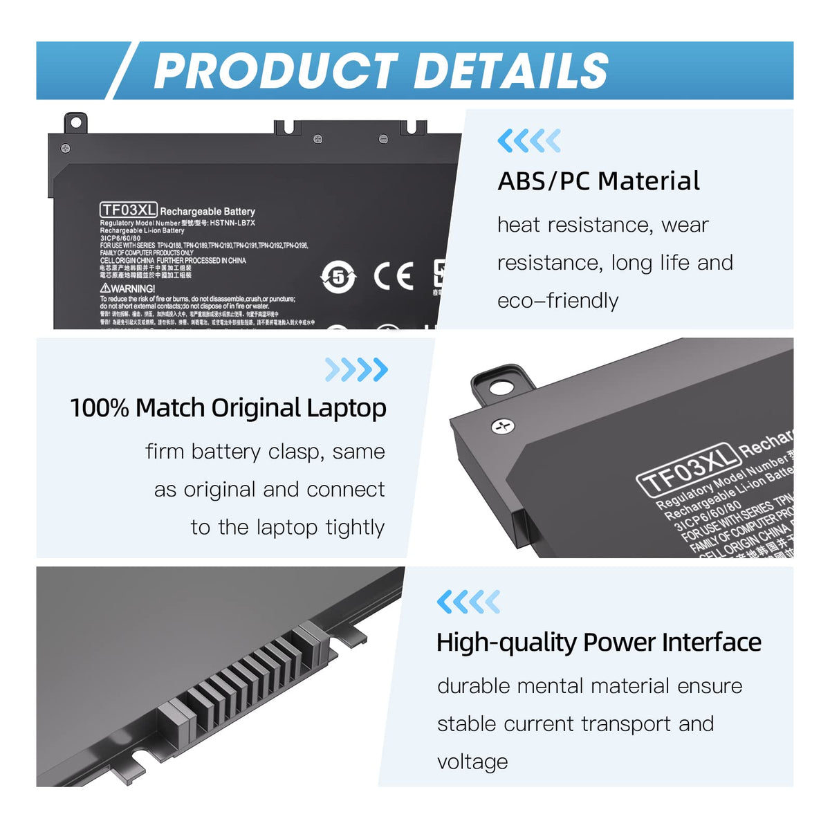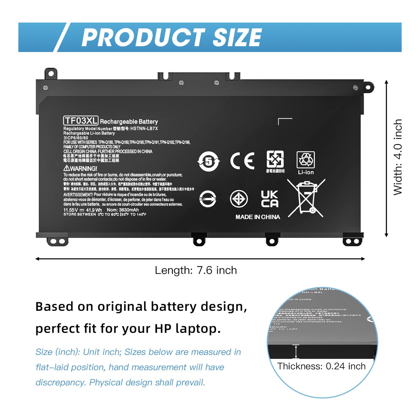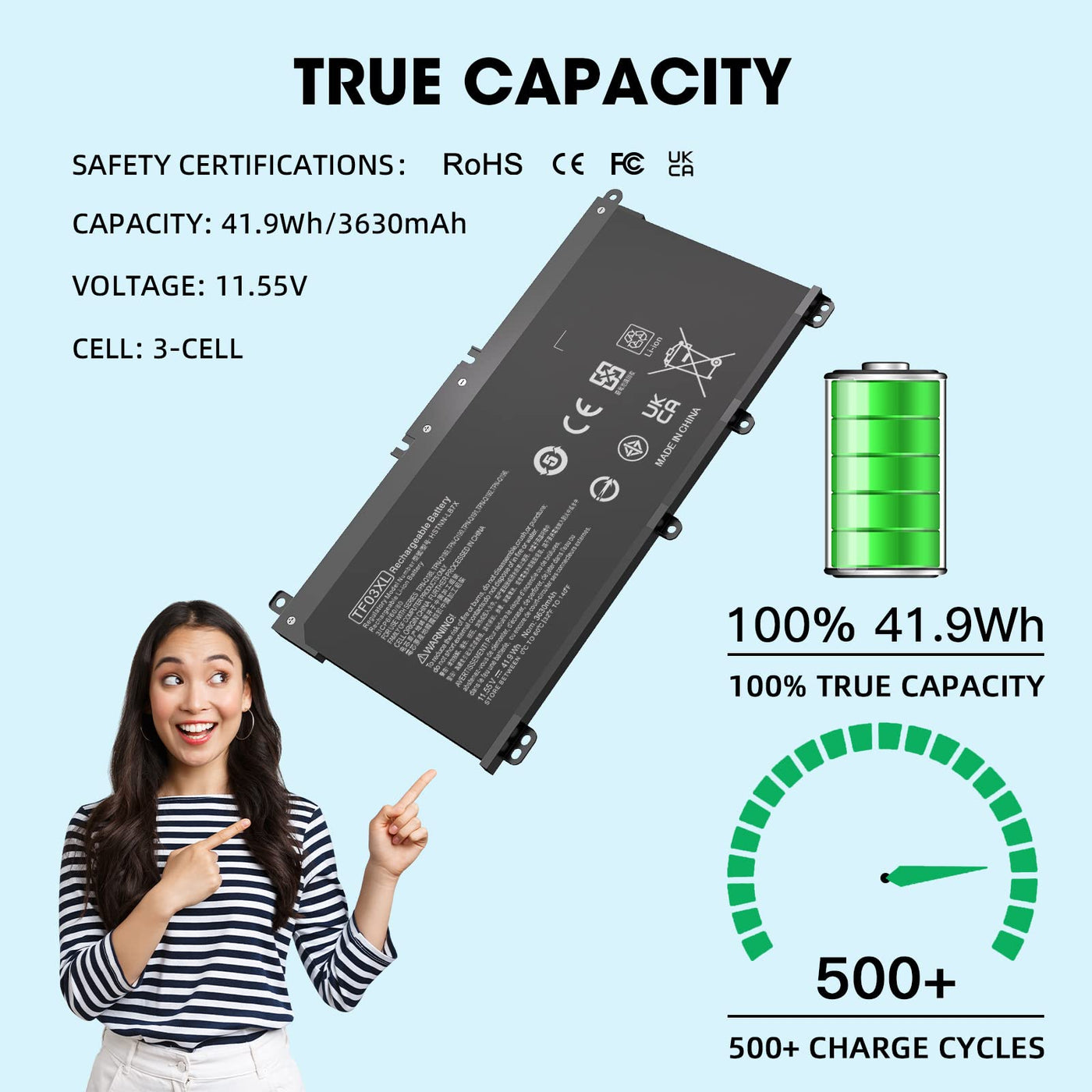 ??? Specification - Tf03Xl Battery For Hp Pavilion. Battery Type: Li-Ion, Capacity: 41.9Wh 3630Mah, Voltage: 11.55V, Cells: 3-Cell. Up To 500 Recharge Cycles Over The Life Of The Battery. | ??? Compatible With - Tf03Xl 920070-855 920046-421 Battery For Hp Pavilion X360 15-Cc0Xx 15-Cc1Xx 15-Cc5Xx 15-Cc6Xx 15-Cd0Xx 15-Ck0Xx 15-Cc023Cl 15-Cc050Wm 15-Cc055Od 15-Cc060Wm 15-Cc123Cl 15-Cc195Cl 15-Cc563St 15-Cc610Ms 15-Cc665Cl 15-Cd040Wm 15-Ck075Nr 14M-Cd0Xxx 14-Bf0Xx 14-Bf1Xx 14-Bk0Xx 14-Cd1Xxx 14-Cd2Xxx 14M-Cd0003Dx 14M-Cd0001Dx 14-Bk091St 14-Bk063St 14-Cd1021La 14-Cd1055Cl 14-Cd1951Cl 14-Cd2053Cl 17-Ar0Xx 17-Ar007Ca 17-Ar050Wm (For More Models, Please See The Product Description) | ??? Part Number - Tf03041Xl Battery For Tf03Xl Tf03041 920070-855 920046-421 920046-121 920070-856 920046-541 920046-855 920070-421 Hstnn-Lb7J Hstnn-Ib7Y Hstnn-Lb7X Tpn-Q190 Tpn-Q188 Tpn-Q189 Tpn-Q191 Tpn-Q192 Tpn-Q196 Tf03Xlpn-Q188 | ??? High Safety - 100% New, 100% Compatibility. Certified By Ce/Fcc/Rohs/Ukca. Over-Current Protection, Over-Voltage Protection, Over-Temperature Protection, Short-Circuit Protection, Reserve Protection, Antistatic Impact. | ??? Package Contains - 1 Battery, 1 Triangle Plastic Pry Opening Tool, 2 Screwdrivers.