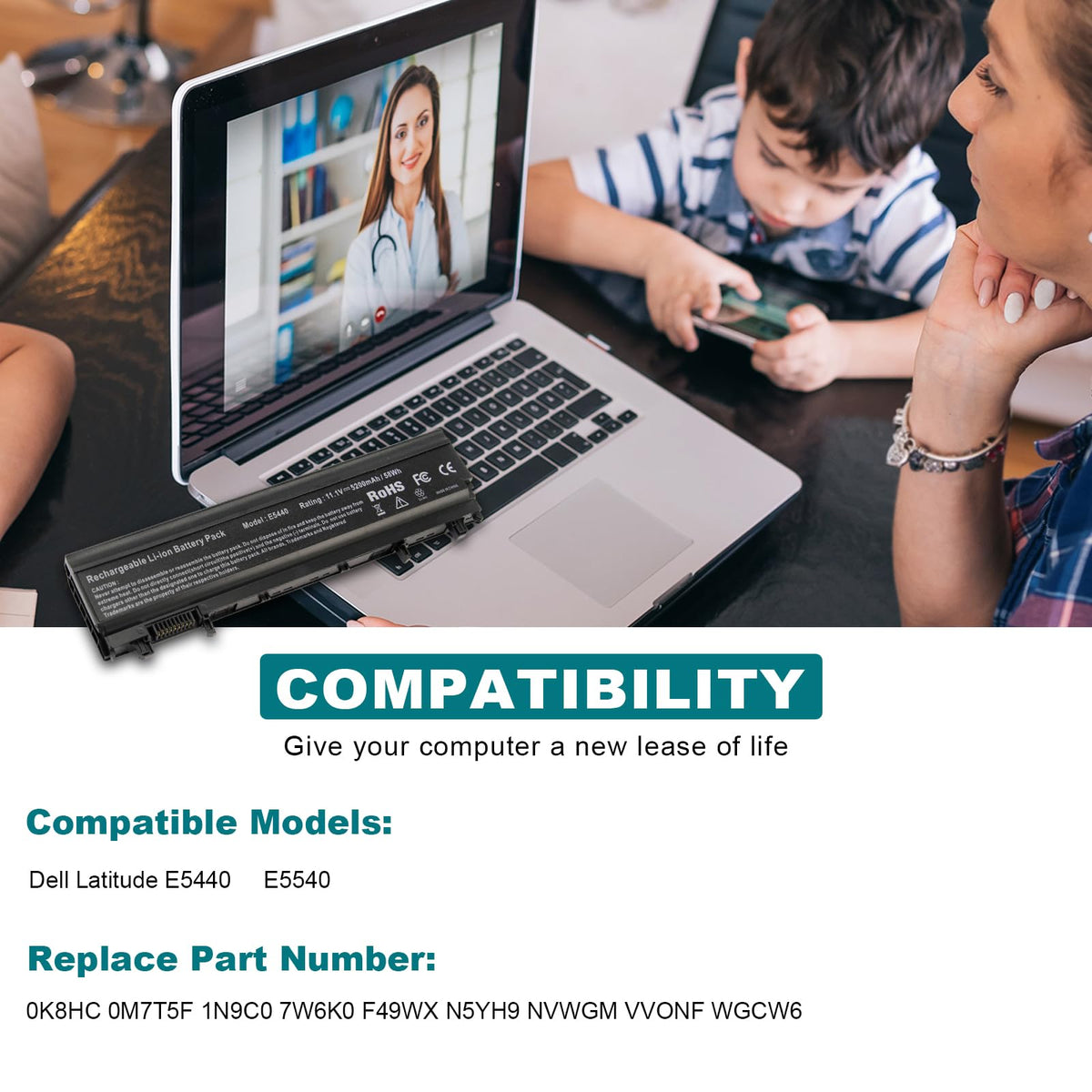 Q: What Dell laptop models are compatible with the TREE.NB Laptop Battery?A: The TREE.NB Laptop Battery is compatible with Dell Latitude 14 Series, Dell Latitude 14 5000 Series, Dell Latitude 14 5000-E5440, Dell Latitude E5440 Series, Dell Latitude 15 Series, Dell Latitude 15 5000 Series, and Dell Latitude 15 5000-E5540.