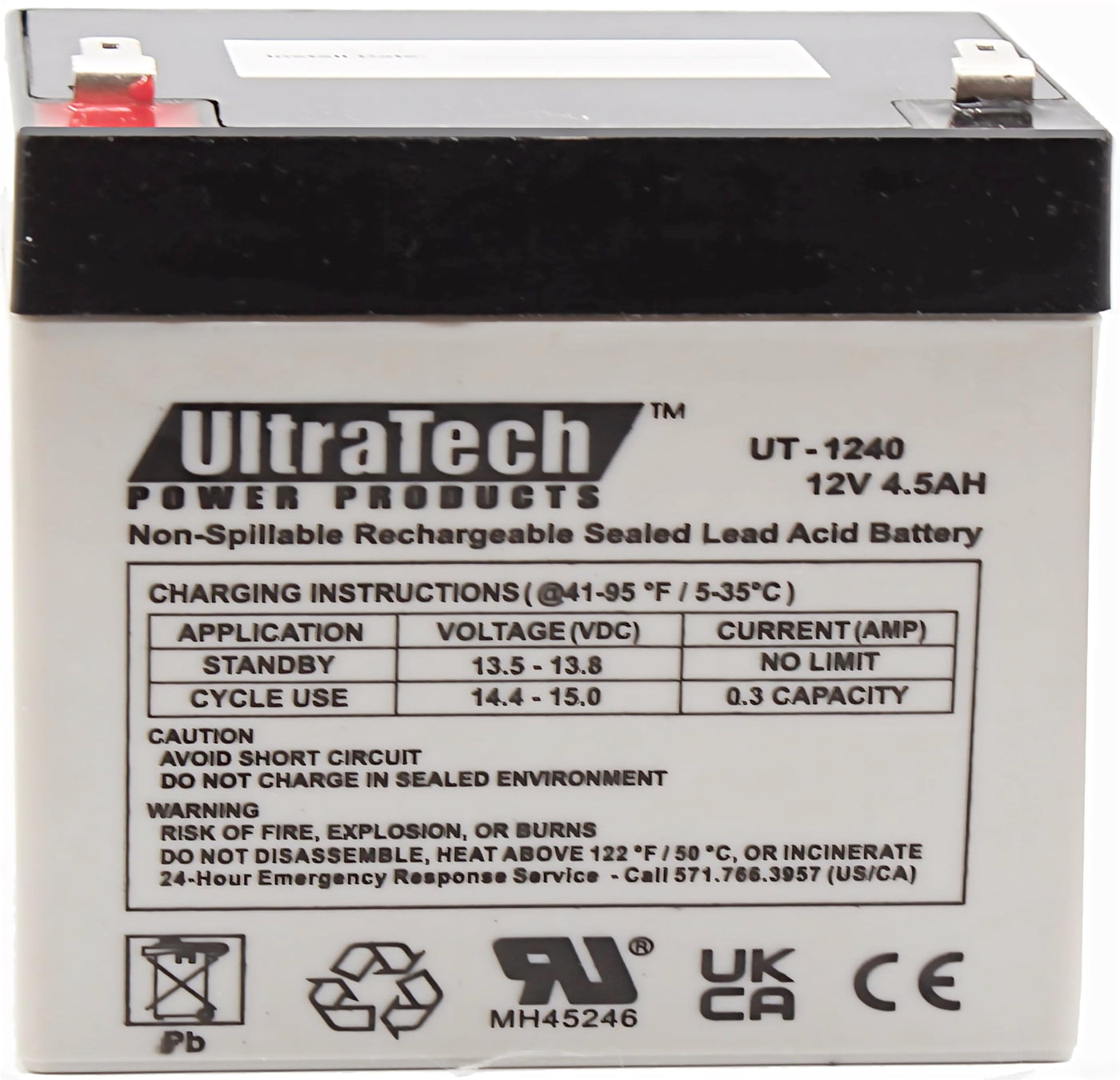 Ultratech Ut 1240 / Ut 1250 F1 12V, 4.5Ah Sealed Lead Acid Alarm Battery Ut1240 Ut 1250 F1 Iso9001