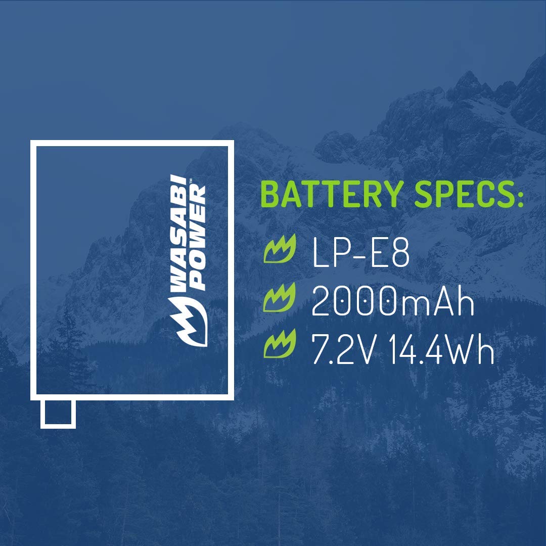 Wasabi Power Battery (2 Pack) and Charger for Canon LP E8 and Canon EOS 550D, EOS 600D, EOS 700D, EOS Rebel T2i, EOS Rebel T3i, EOS Rebel T4i, EOS Rebel T5i